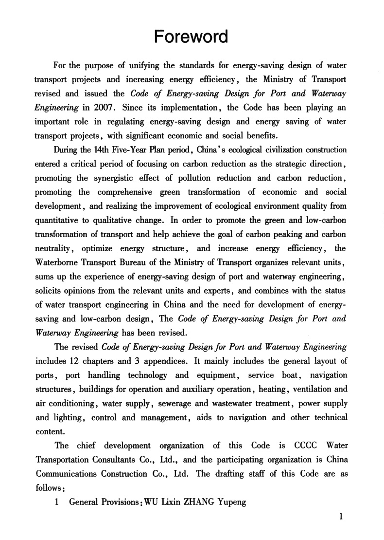 Code of Energy-saving Design for Port and Waterway Engineering 水运工程节能设计规范(JTS/T 150—2022)英文版