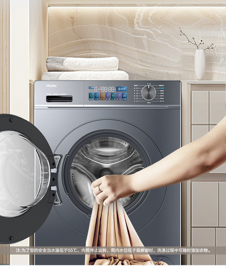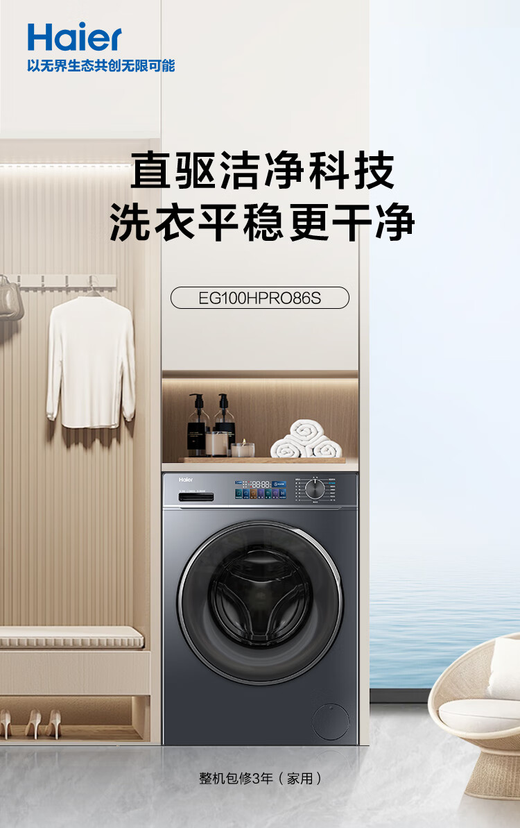 海尔(Haier)直驱变频超薄滚筒洗衣机带烘干10公斤kg家用全自动大容量除菌中途添衣洗烘一体机 10KG滚筒洗烘一体 EG100HPRO86S