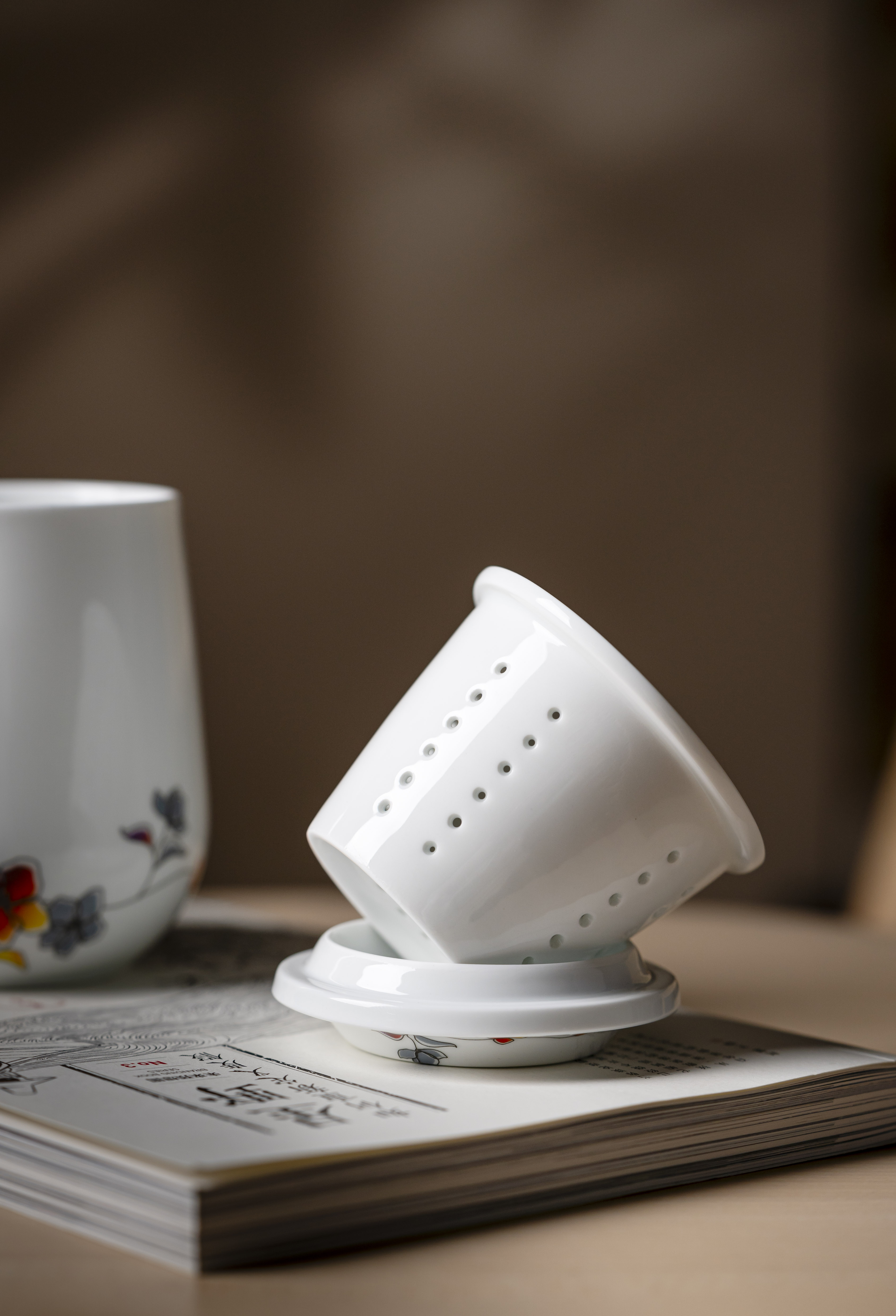富玉 景德镇玲珑茶杯大容量嫣然女士茶漏杯