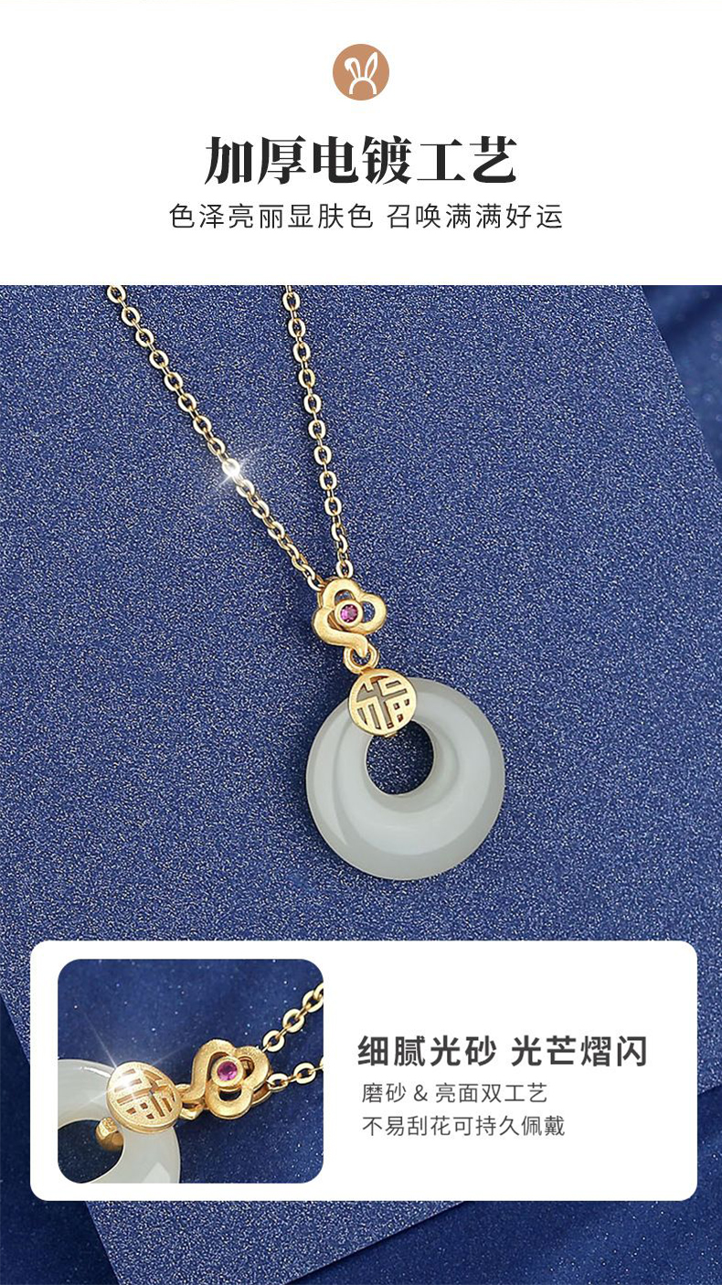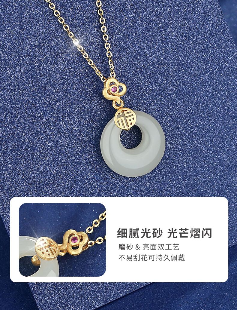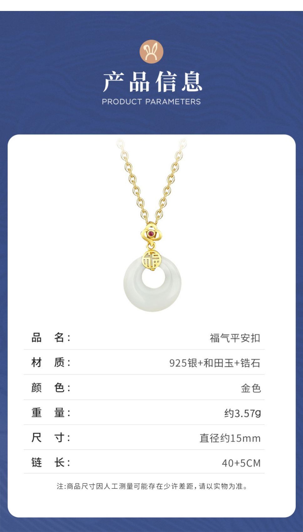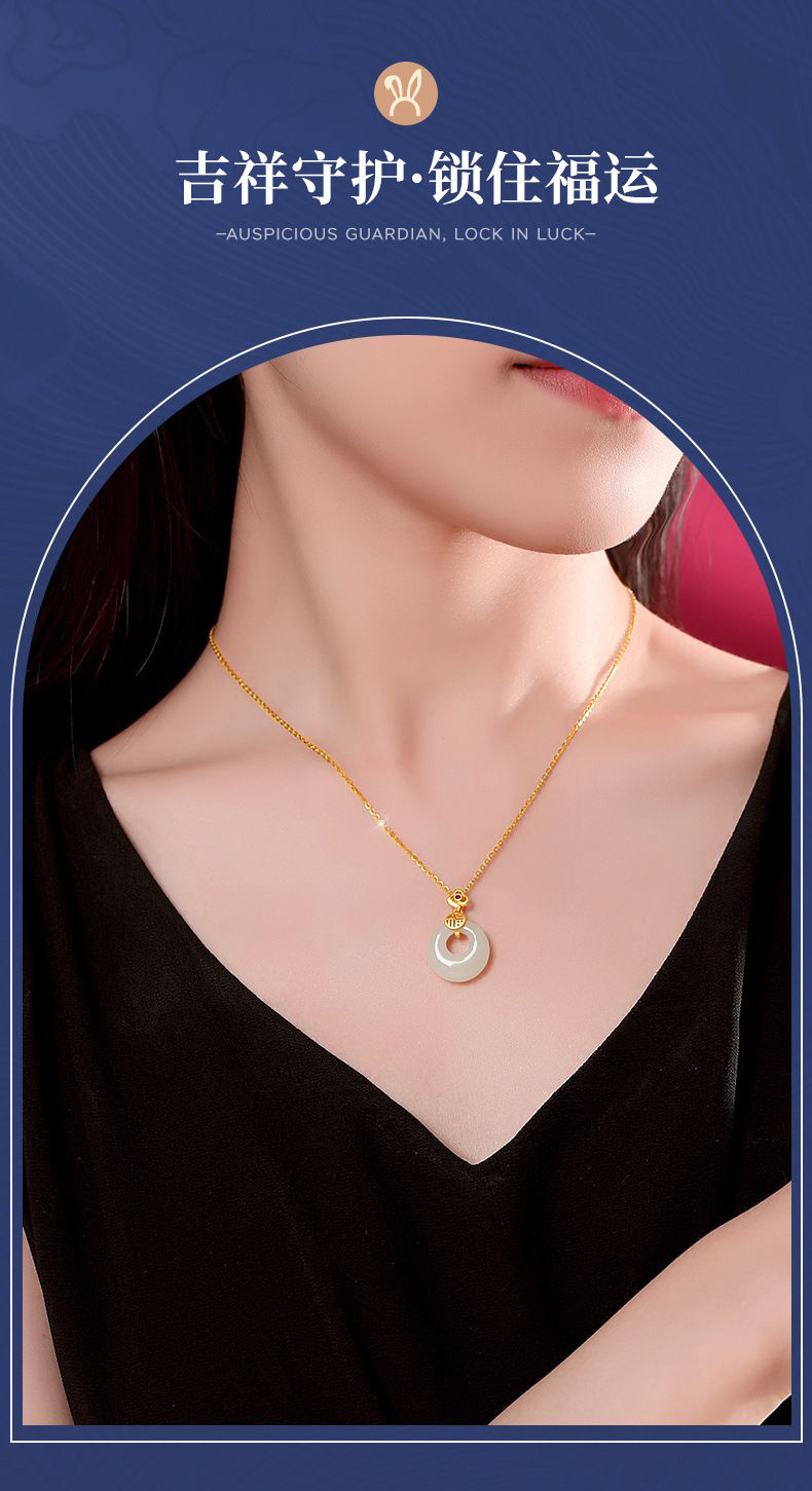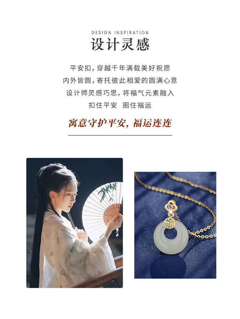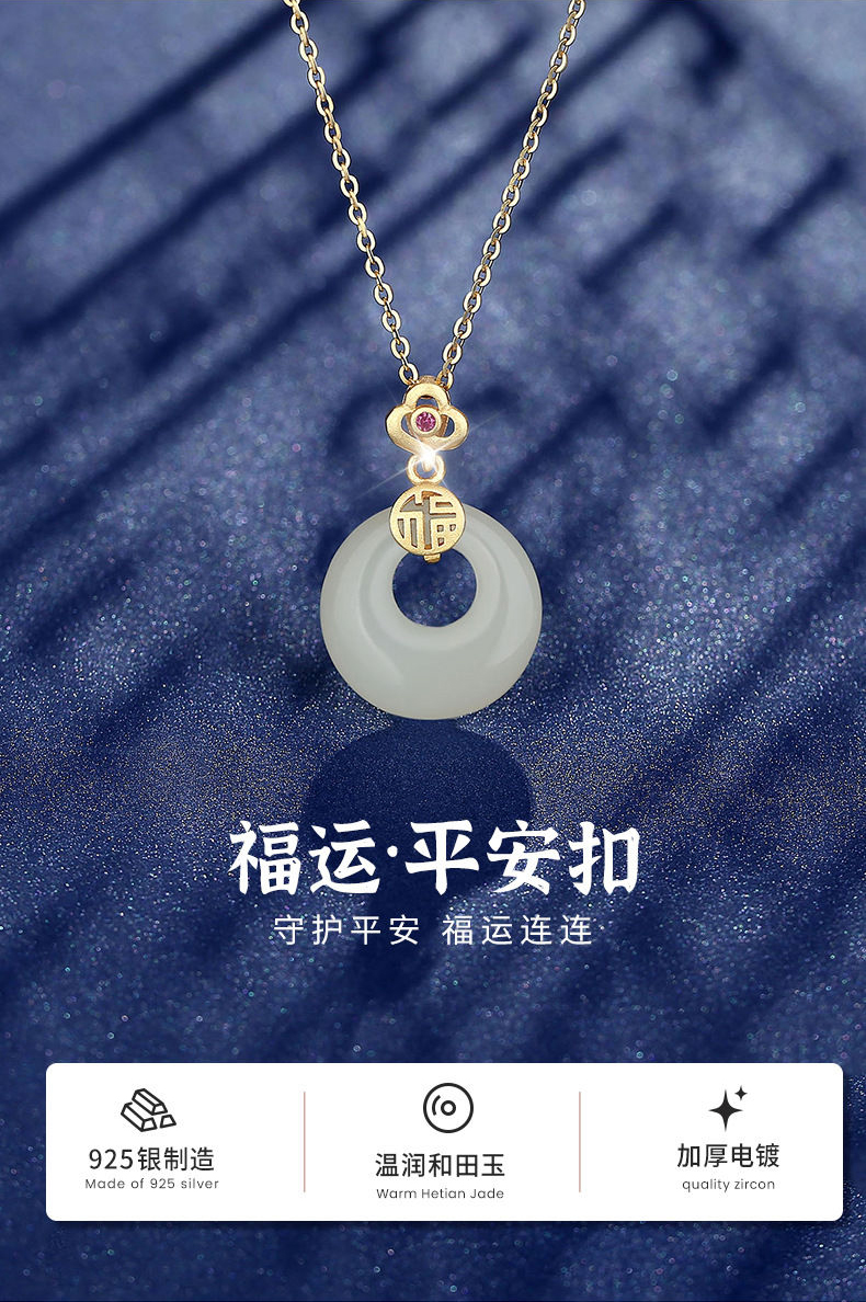 卡蒂罗/KADER 福气平安扣 925银和田玉吉祥如意福牌新中式国潮设计锁骨链 好运平安锁 女神 520 礼物礼盒款