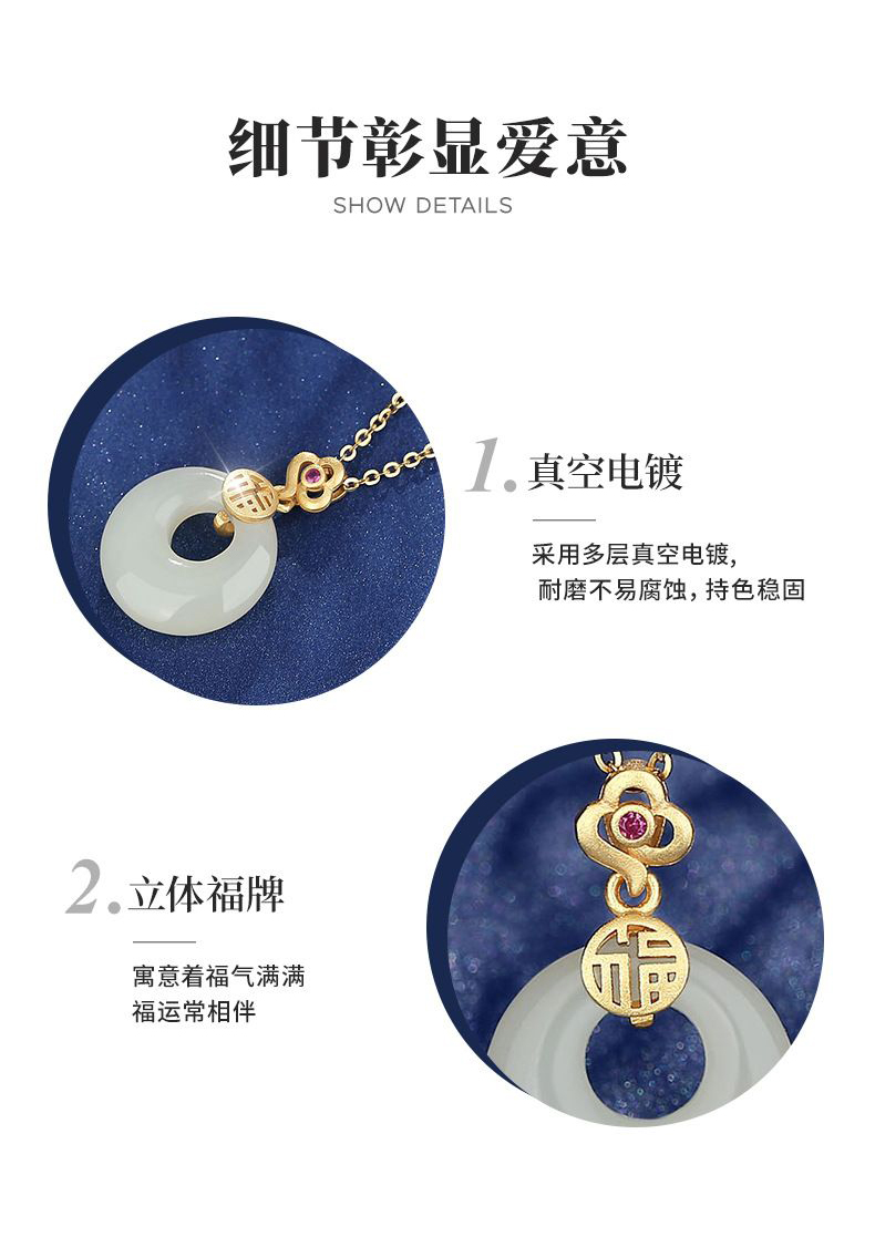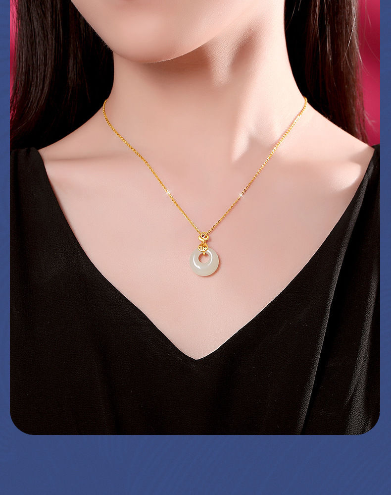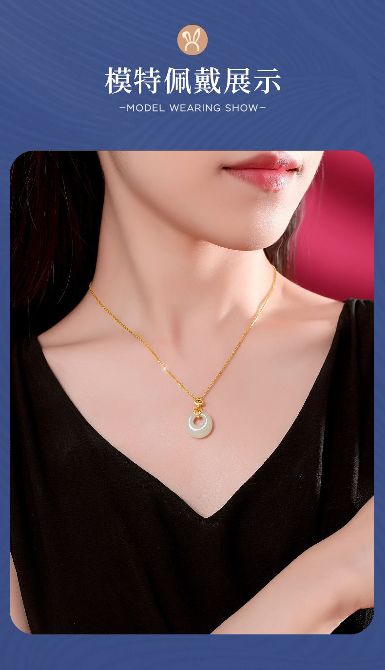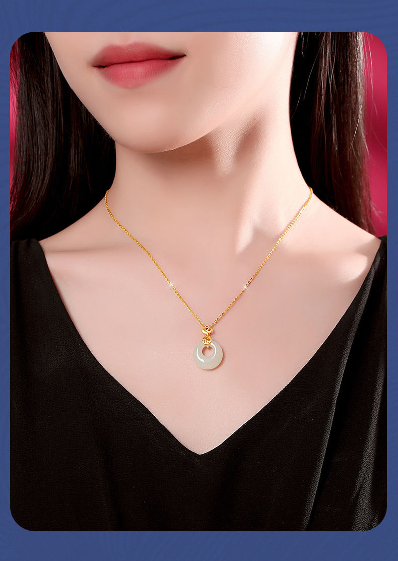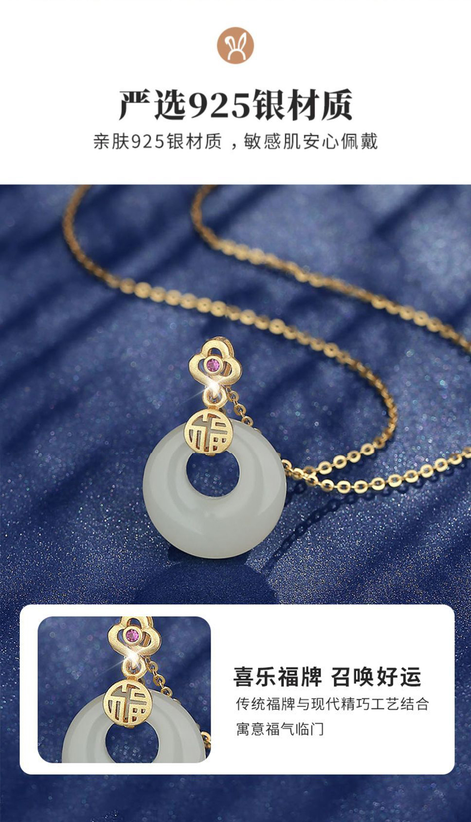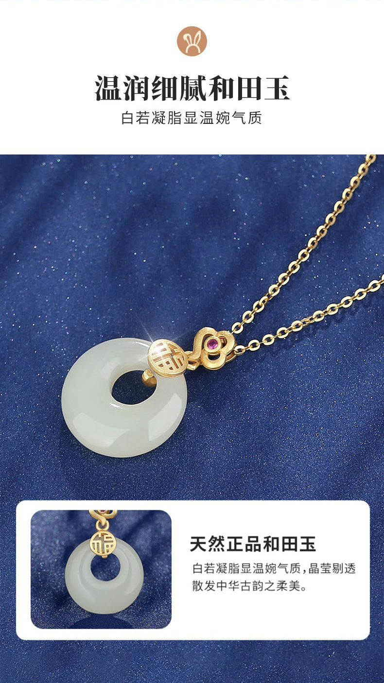 卡蒂罗/KADER 福气平安扣 925银和田玉吉祥如意福牌新中式国潮设计锁骨链 好运平安锁 女神 520 礼物礼盒款