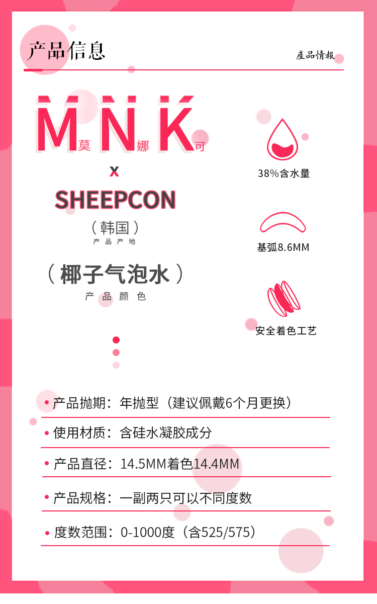 sheepcon 年抛美瞳 椰子气泡水 直径水14.5mm着色14.4mm 商品图2