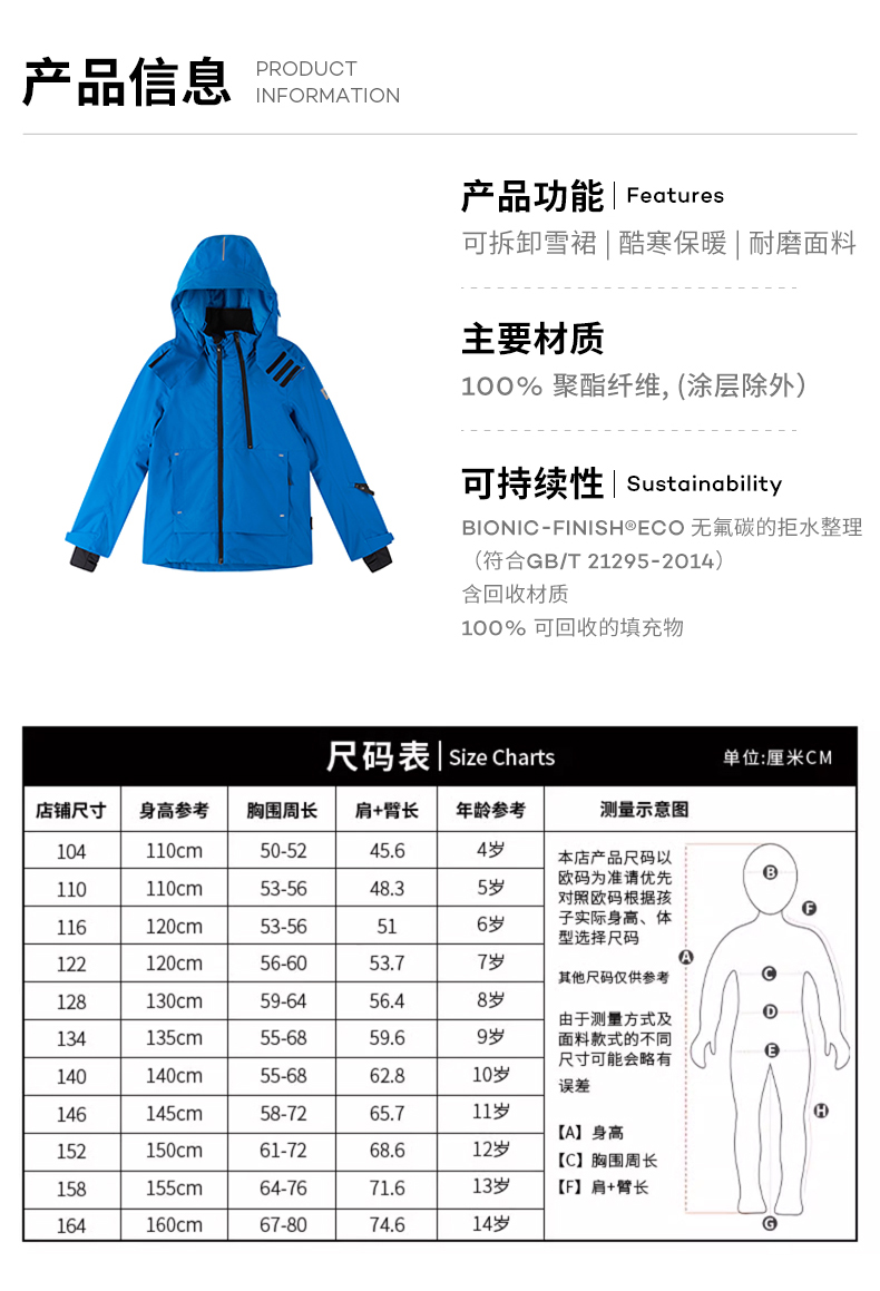 芬兰reima2024秋冬新款男女中童儿童拒水拒风雪服户外运动棉夹克