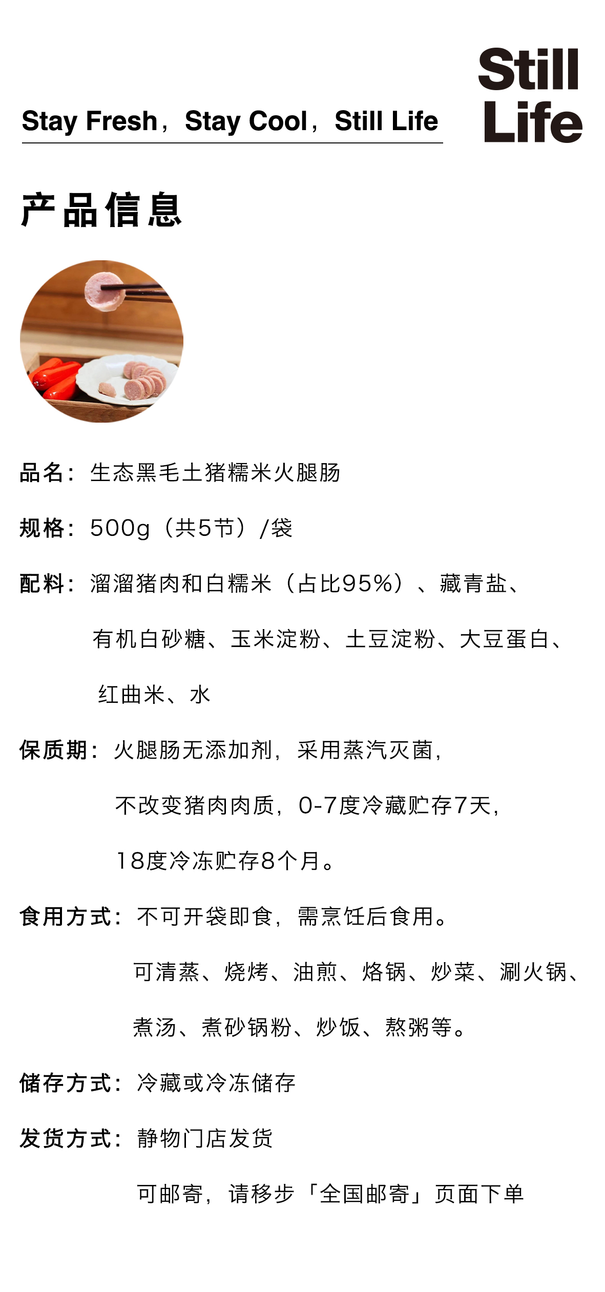 生态黑毛土猪糯米火腿肠500g(5节/袋)|贵州