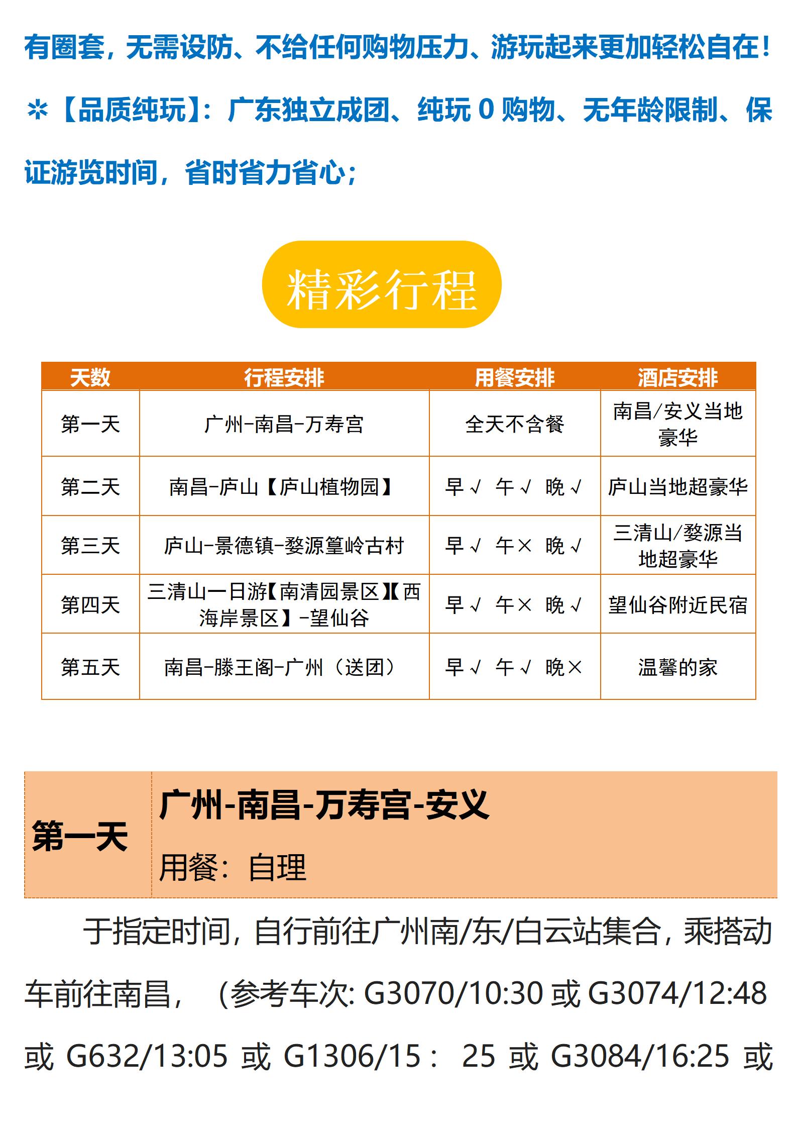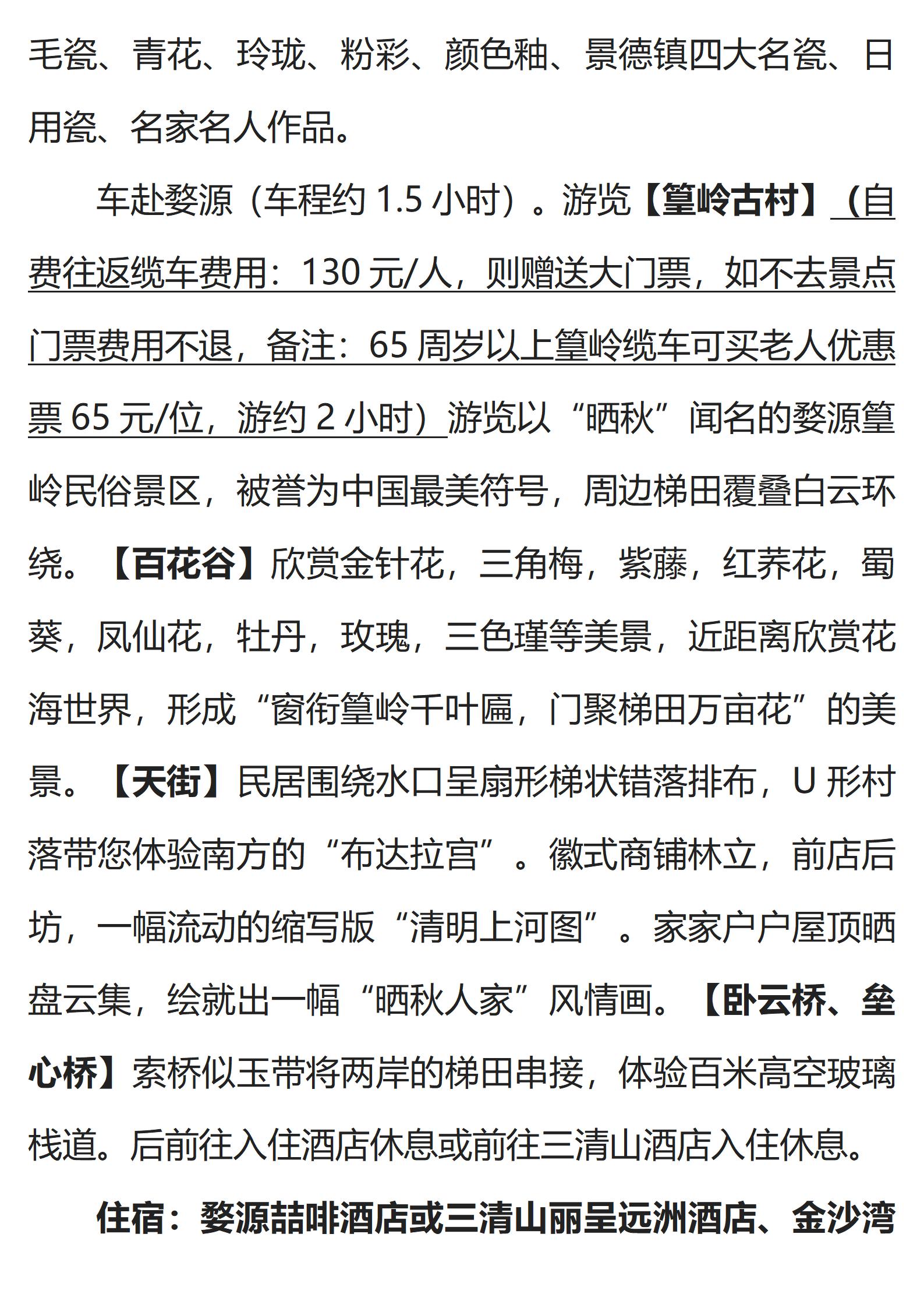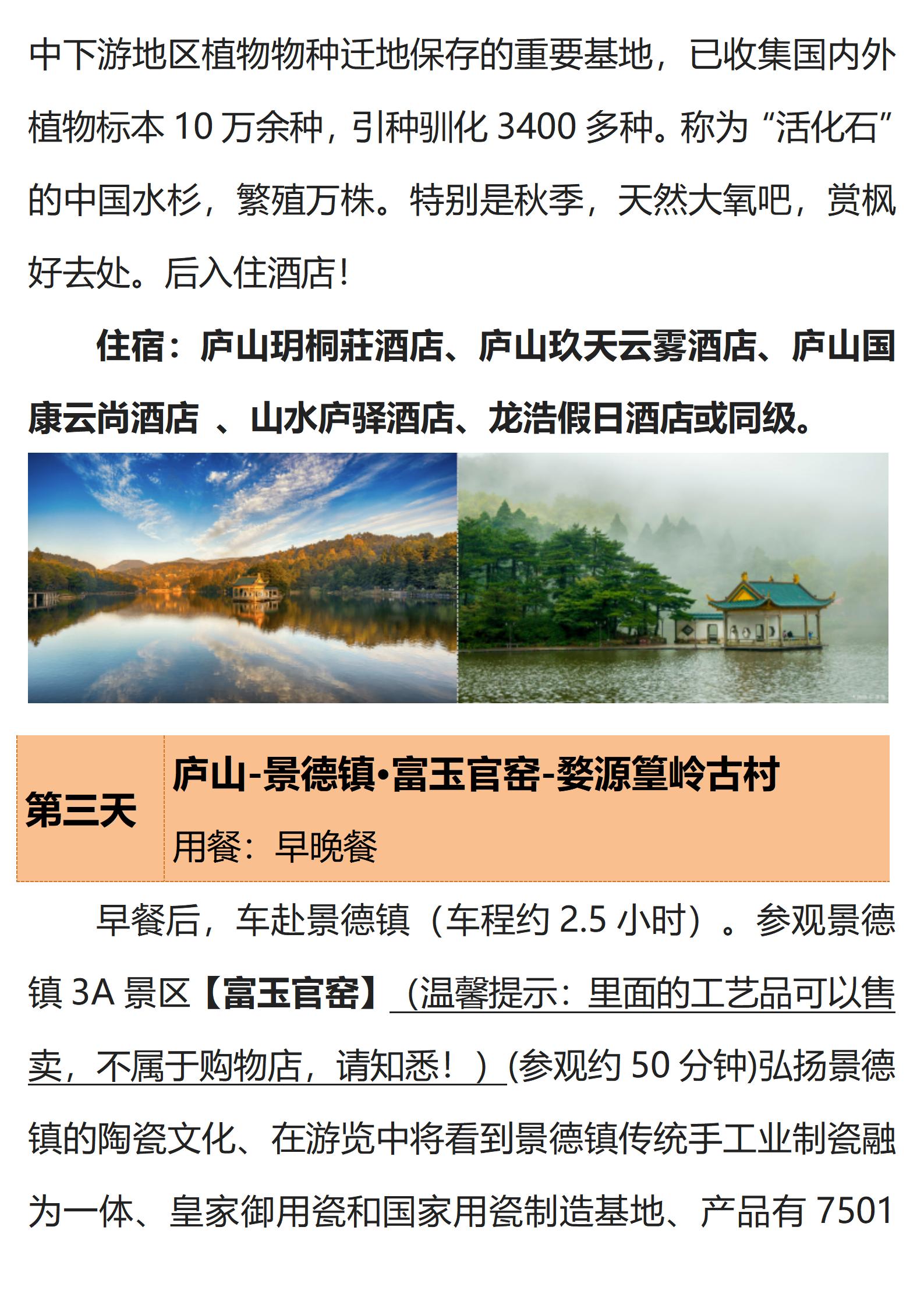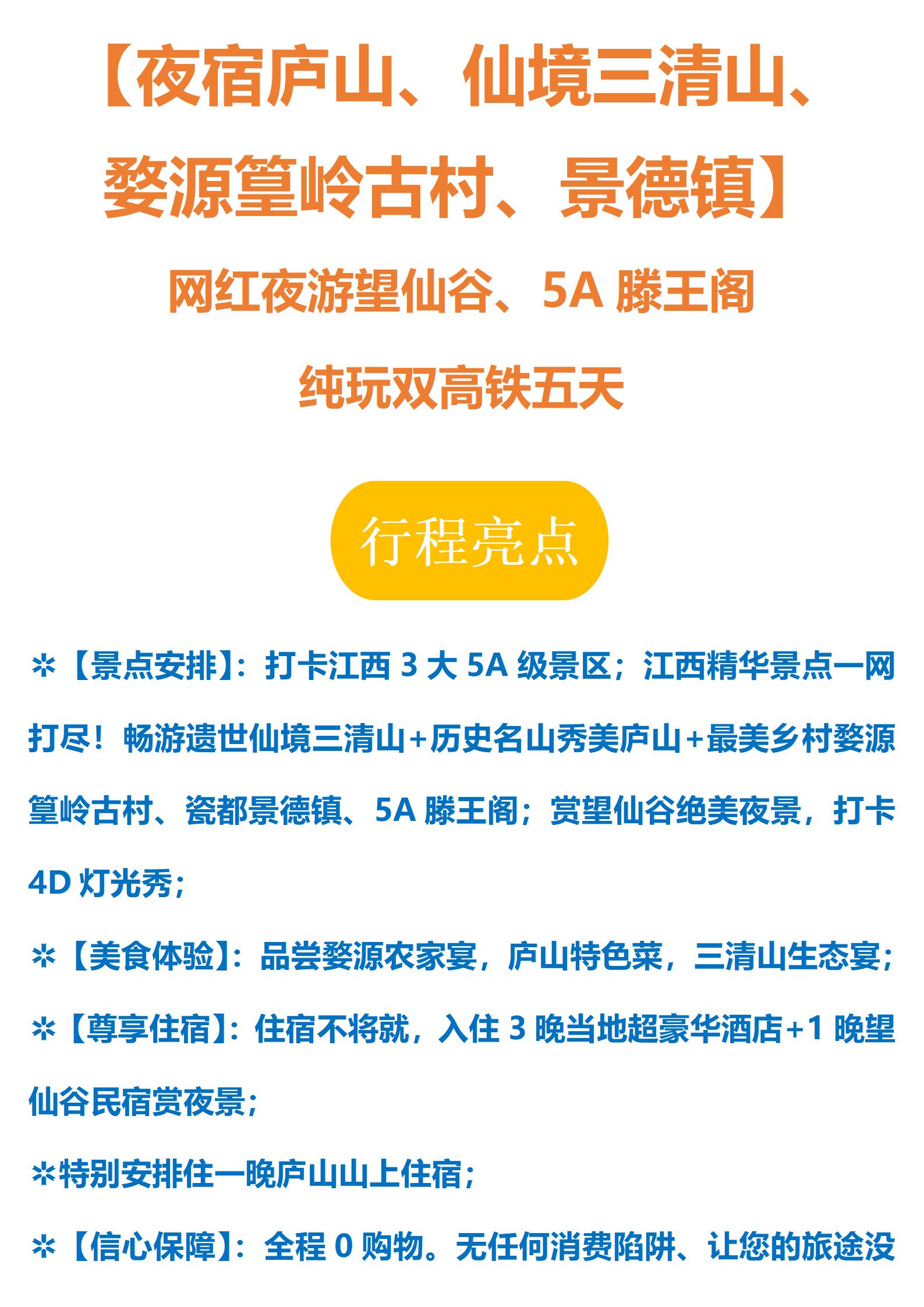 【夜宿庐山、仙境三清山、 婺源篁岭古村、景德镇】 网红夜游望仙谷、5A滕王阁 纯玩双高铁五天