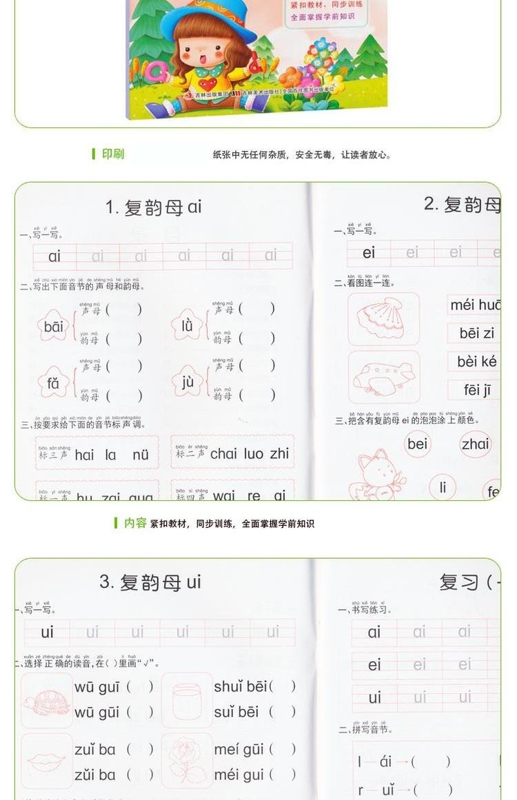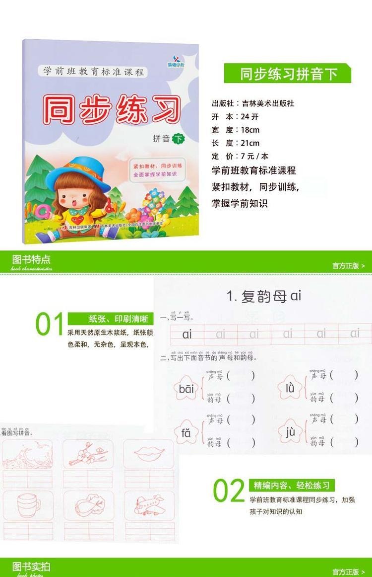 3-6岁儿童学前班教育标准课程同步练习拼音下 幼小衔接拼音一日一练 学前拼音练习册拼音练写册 幼儿园拼音测试题 幼儿学拼音书籍