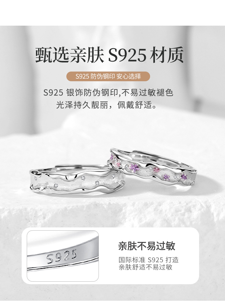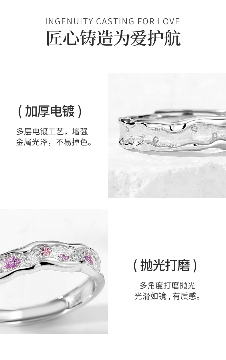 卡蒂罗/KADER 莫奈花园情侣对戒 淡紫色小花可爱清新开口可调节素圈一对 梦幻灵动不规则磨砂设计钟爱久久手饰