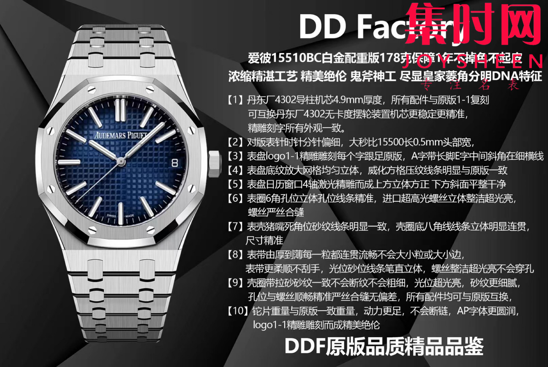 DDF爱彼皇家橡树系列15510BC白金配重版 DDF配重178克 丹东4302无卡度机 男士腕表