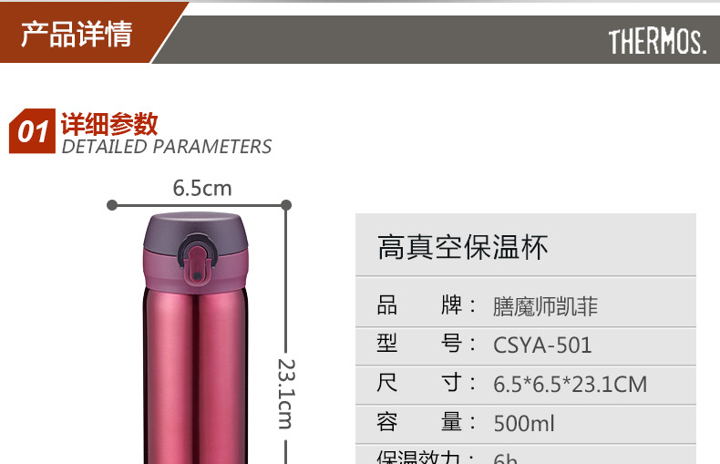 【下单前请备注颜色】膳魔师凯菲高真空保温杯CSYA-501