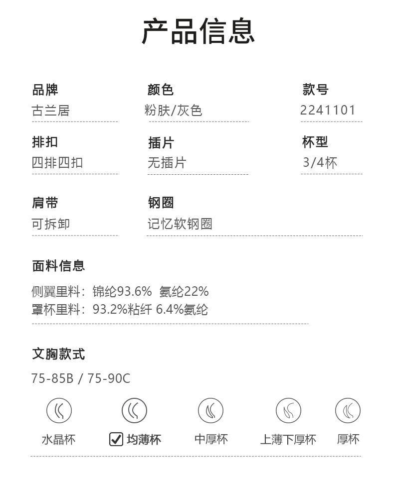 【88元1件】古兰居云感棉文胸-2241120