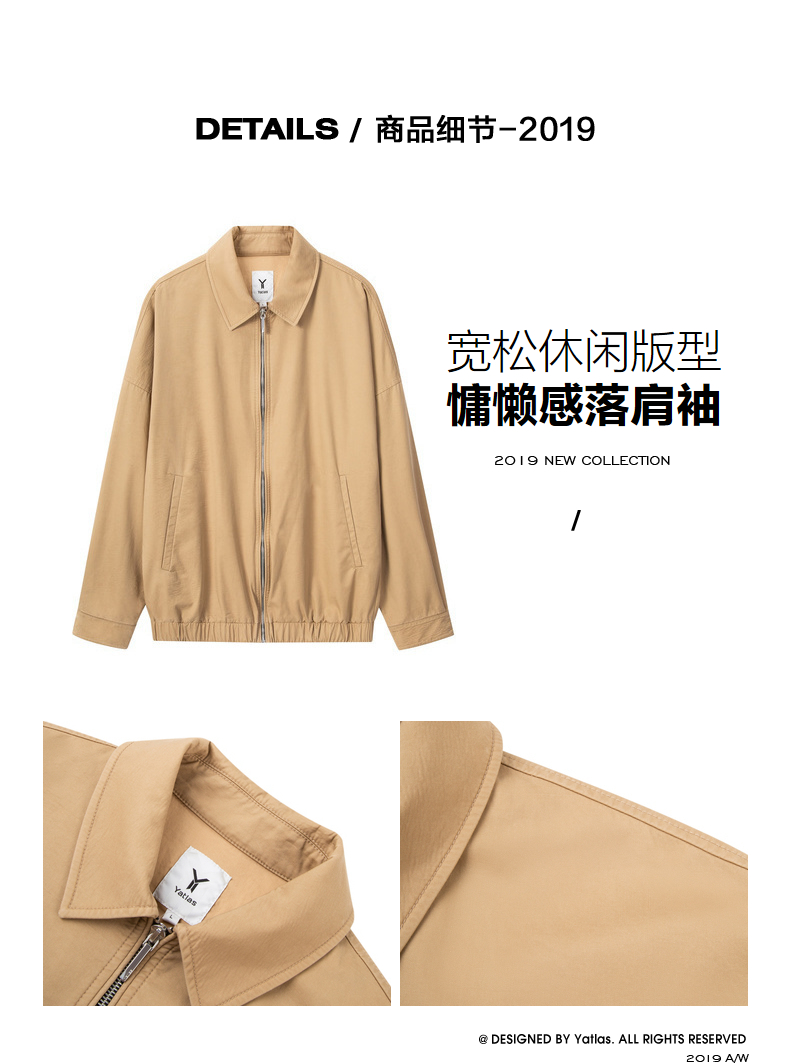 YATLAS亚锐男装2020秋季卡其色百搭版型翻领夹克男潮#YY121167E