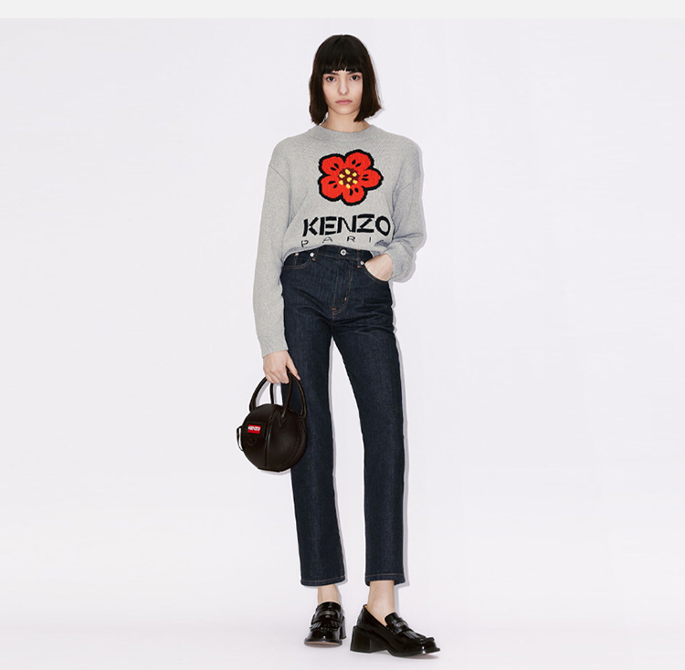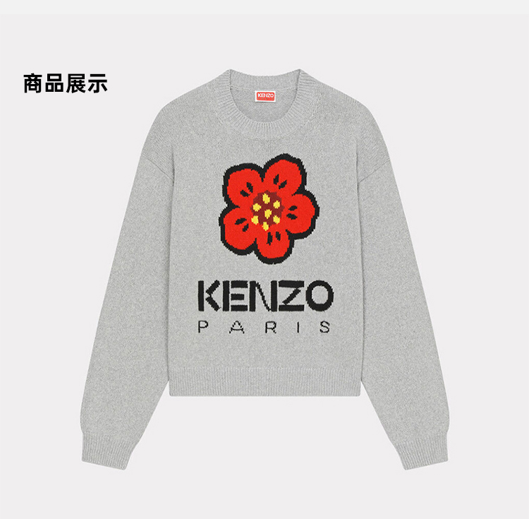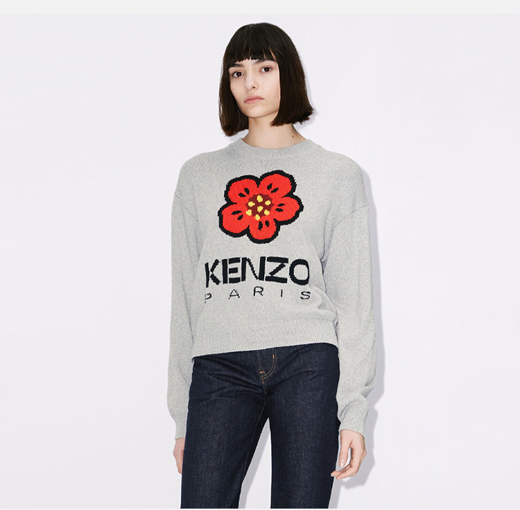 KENZO 高田贤三 女士棉质 “BOKE FLOWER” 徽标嵌花长袖针织衫 灰色 FD52 PU380 3LD 94