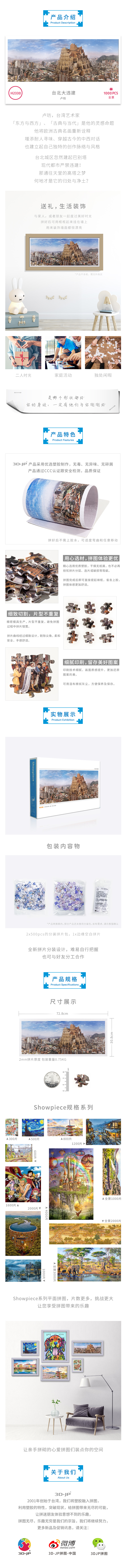 【折扣商品 不退不换】1000片 全景平面拼图 塑料拼图 H2330 全景长版拼图-卢昉- 台北大违建