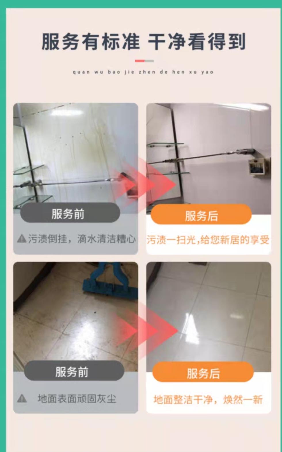 2.家庭保洁为固定4小时服务,上门服务时间为8:00-12:00,14:00-18:00,超出时间暂无法提供服务,请根据家庭情况预约合适人员上门!如遇服务旺季,请提前预约,以免耽误您的排程;