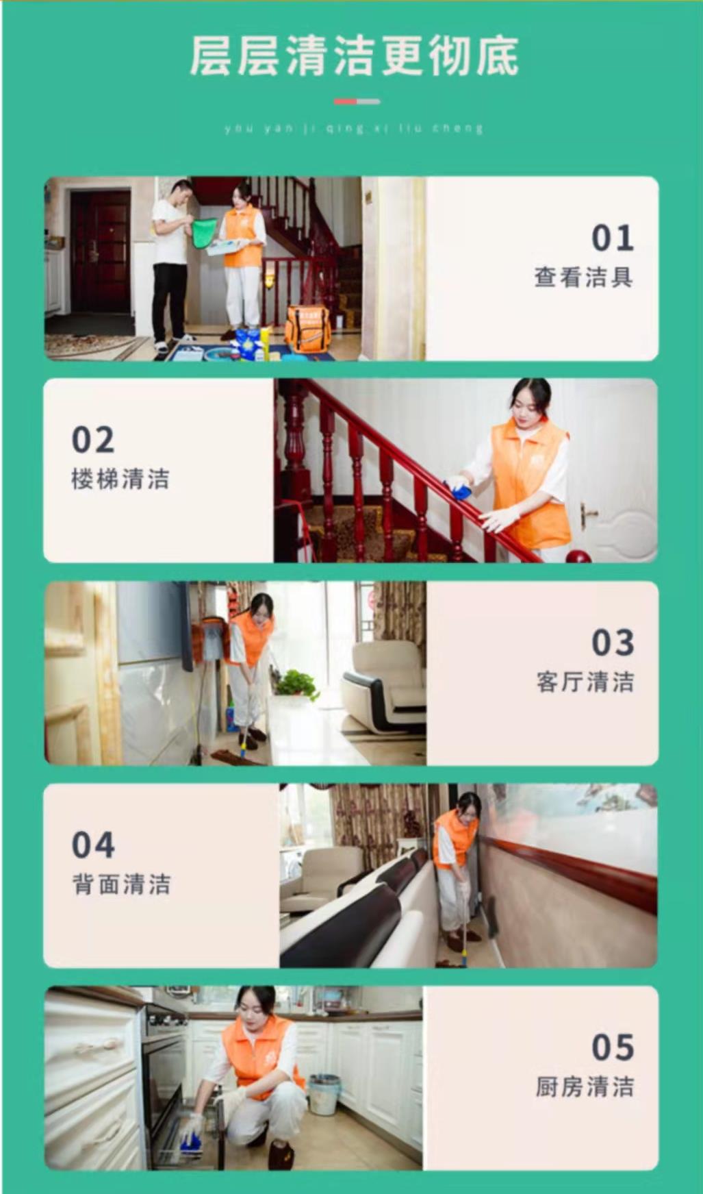 1.4小时家庭保洁服务为家庭表面清洁,服务内容包含厨房、客厅、卫生间、卧室、阳台、擦玻璃等家庭表面保洁;