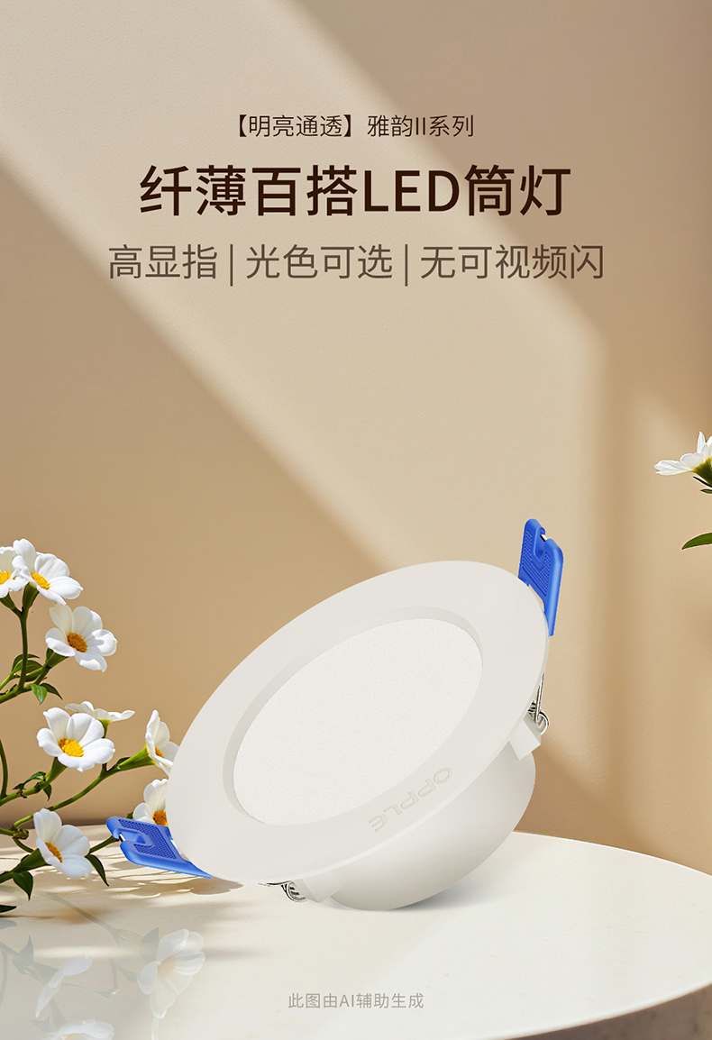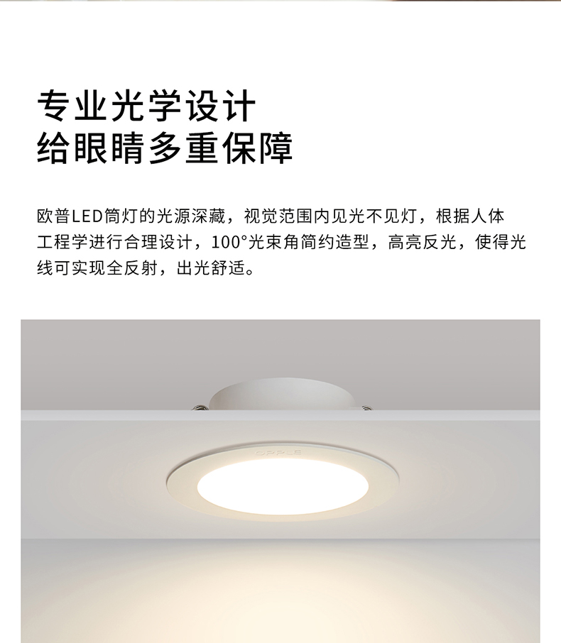 欧普(OPPLE)筒灯4w孔灯超薄桶灯吊顶天花灯过道嵌入式洞灯客厅6w雅韵