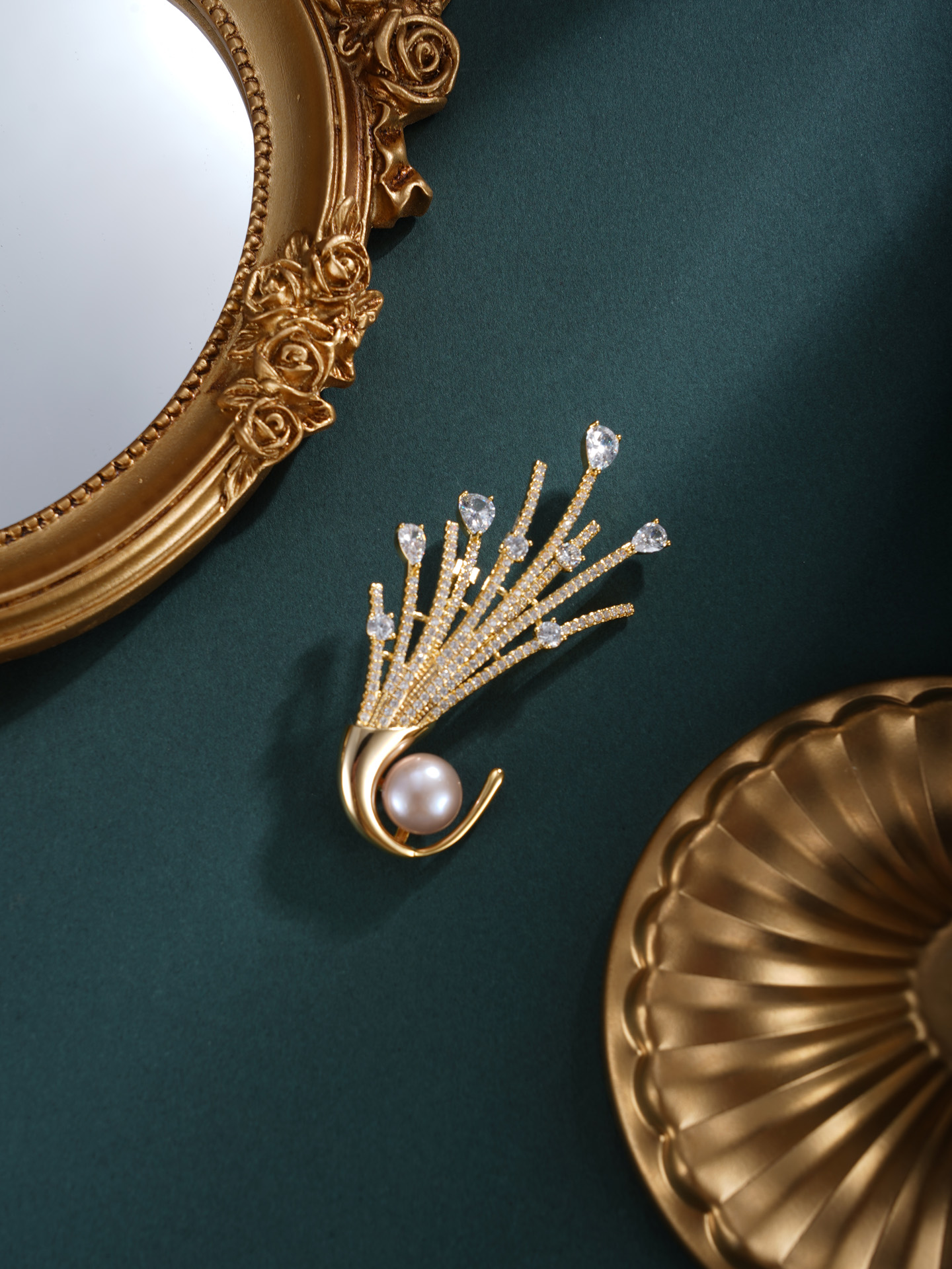 子佩集【风语勋章】珍珠惜王妃胸针【XXXZ263】一束花镀金2602