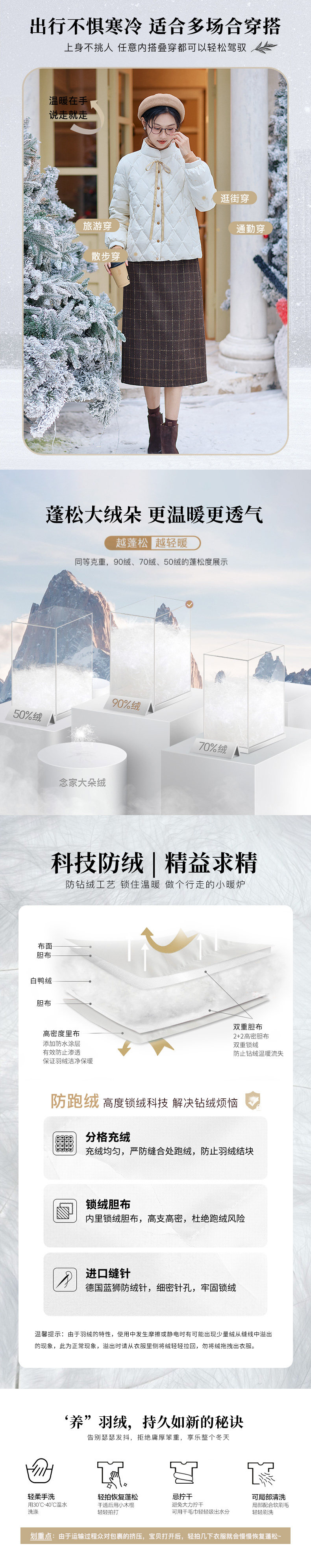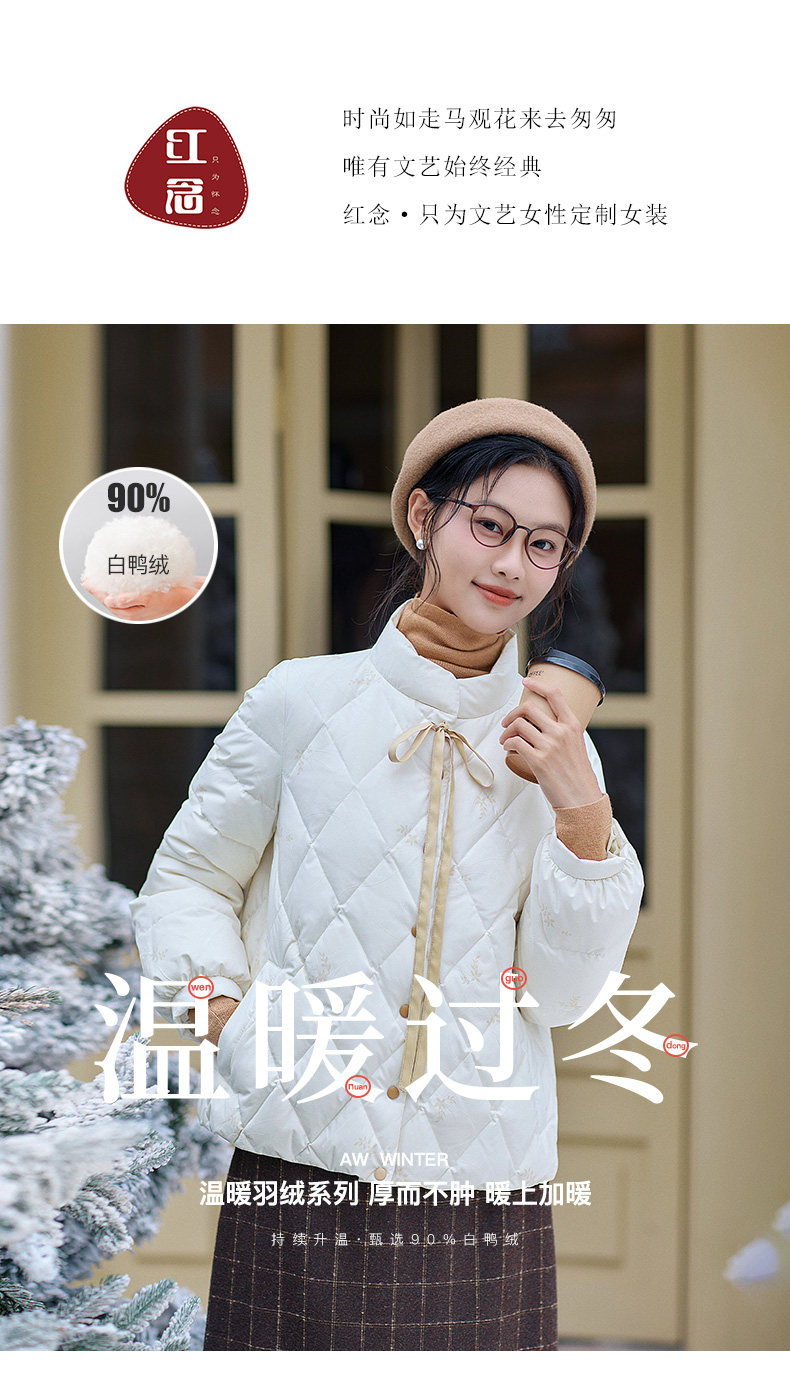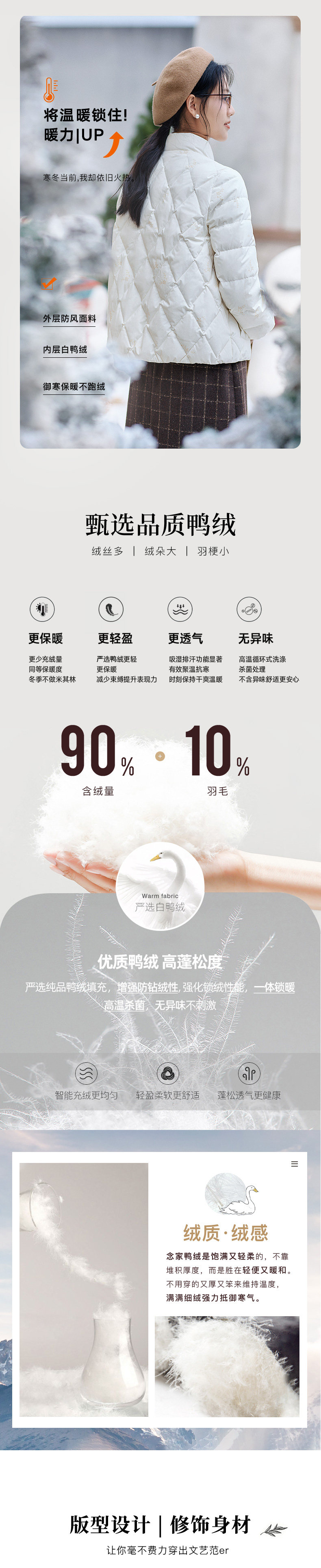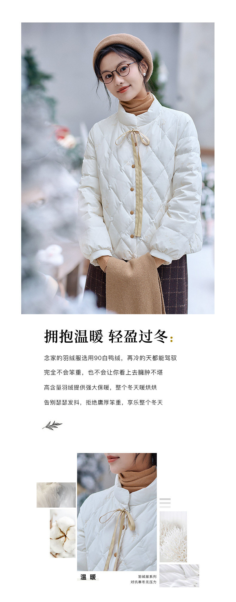 红念米白色立领羽绒服女短款小个子设计感2025冬季新款白鸭绒外套