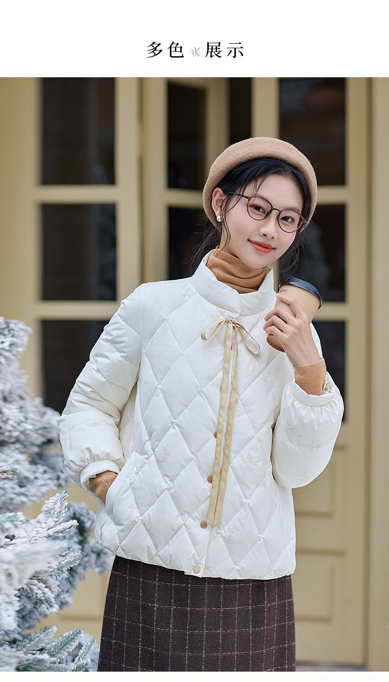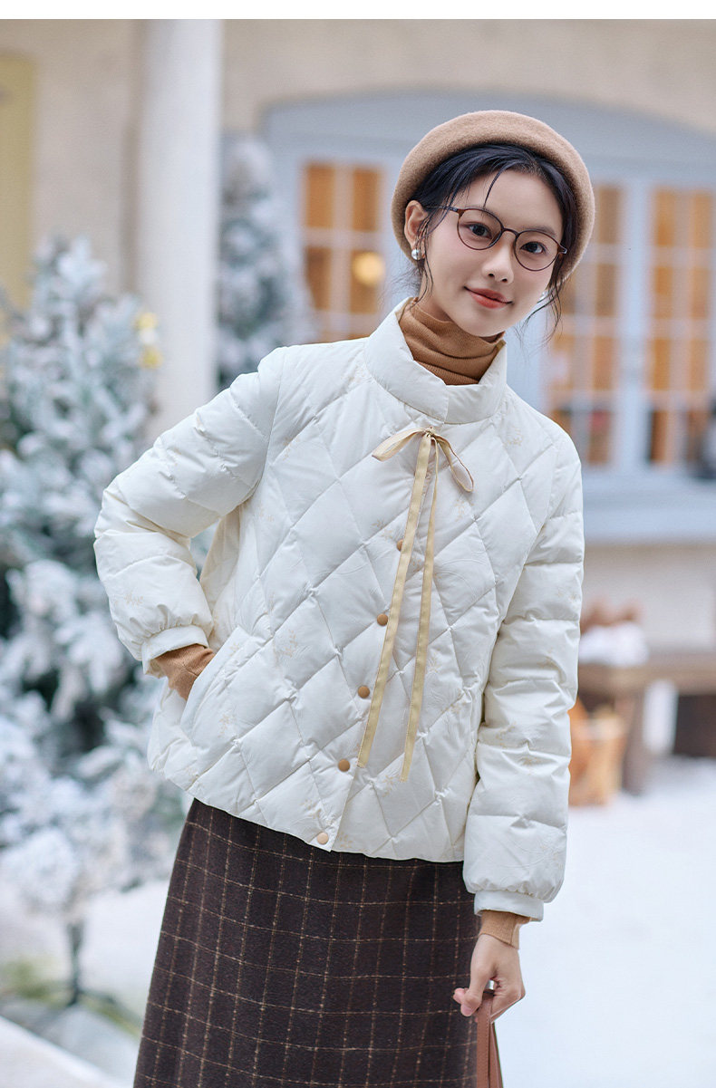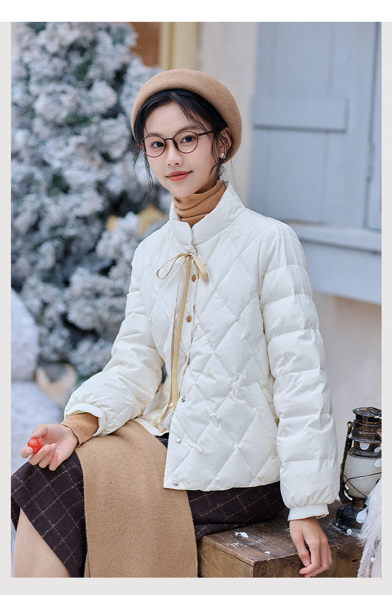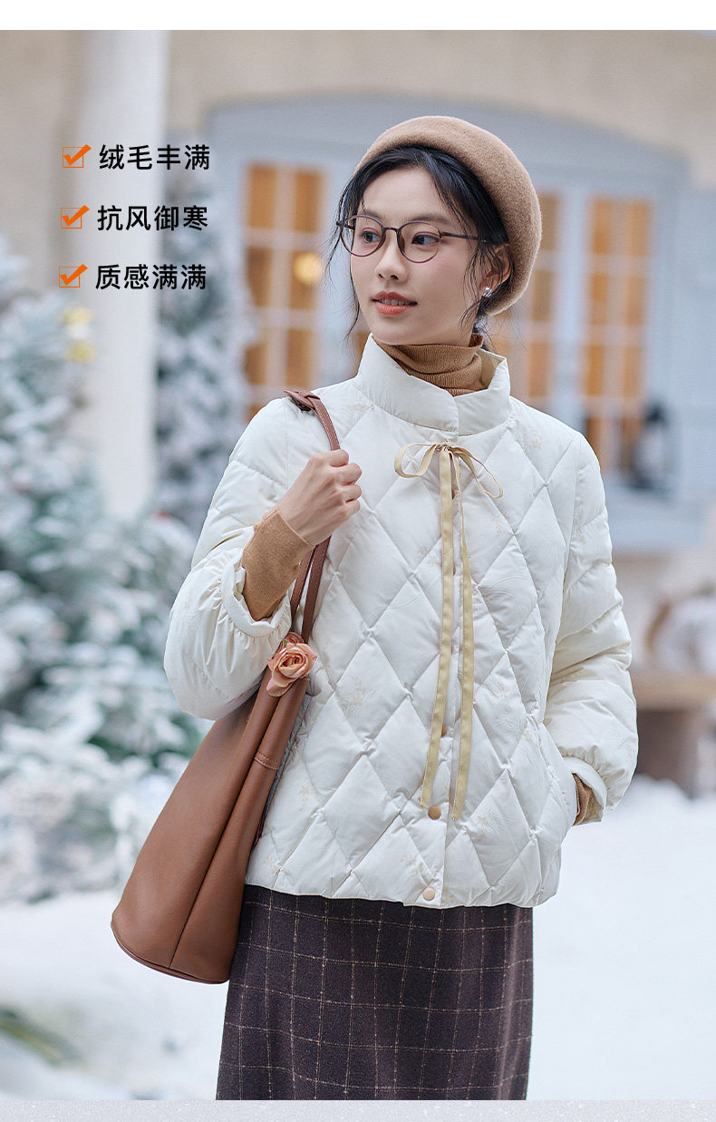 红念米白色立领羽绒服女短款小个子设计感2025冬季新款白鸭绒外套