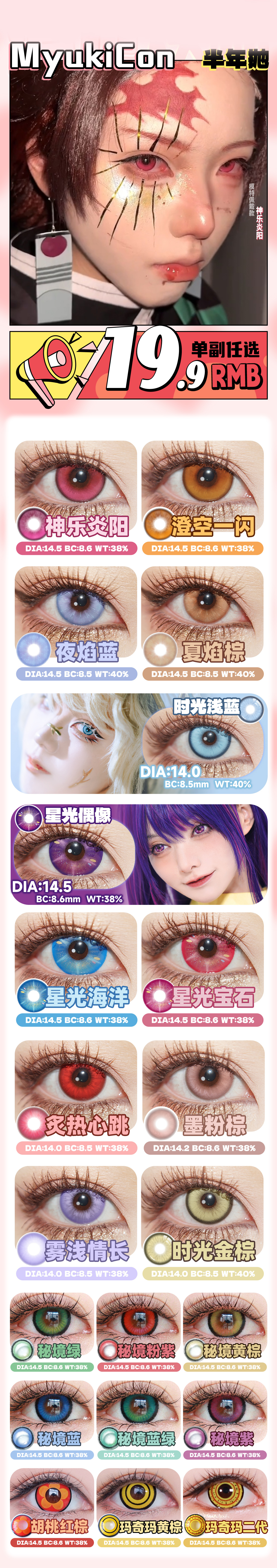 【清仓】MyukiCon雪物语 半年抛 回馈 时光/秘境/心动选手/星光系列 澄空一闪/神乐炎阳/夜焰蓝/时光金棕/炙热心跳/雾浅情长/秘境绿/玛奇玛 COS显色美瞳 排球少年/电锯人/百变小樱