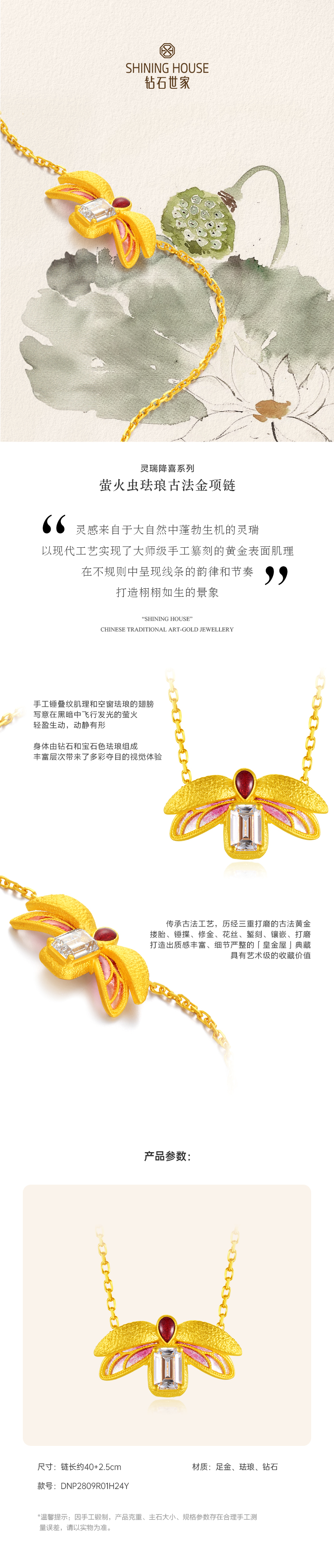 【灵瑞降喜系列】钻石世家 萤火虫珐琅古法金钻石项链 足金黄金项链 空窗珐琅的翅膀、轻盈生动的萤火;钻石和宝石色珐琅组成丰富层次、多彩夺目的视觉体验 【黄金产品不支持无理由退换货】预计3-5天发货