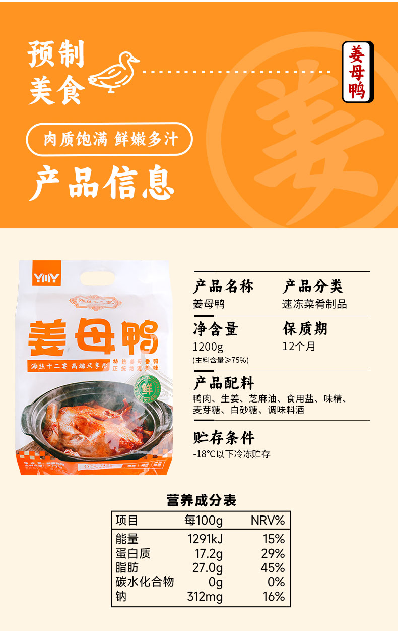 海丝十二宴姜母鸭(约1kg/只+酱包)生产日期: 12月1日