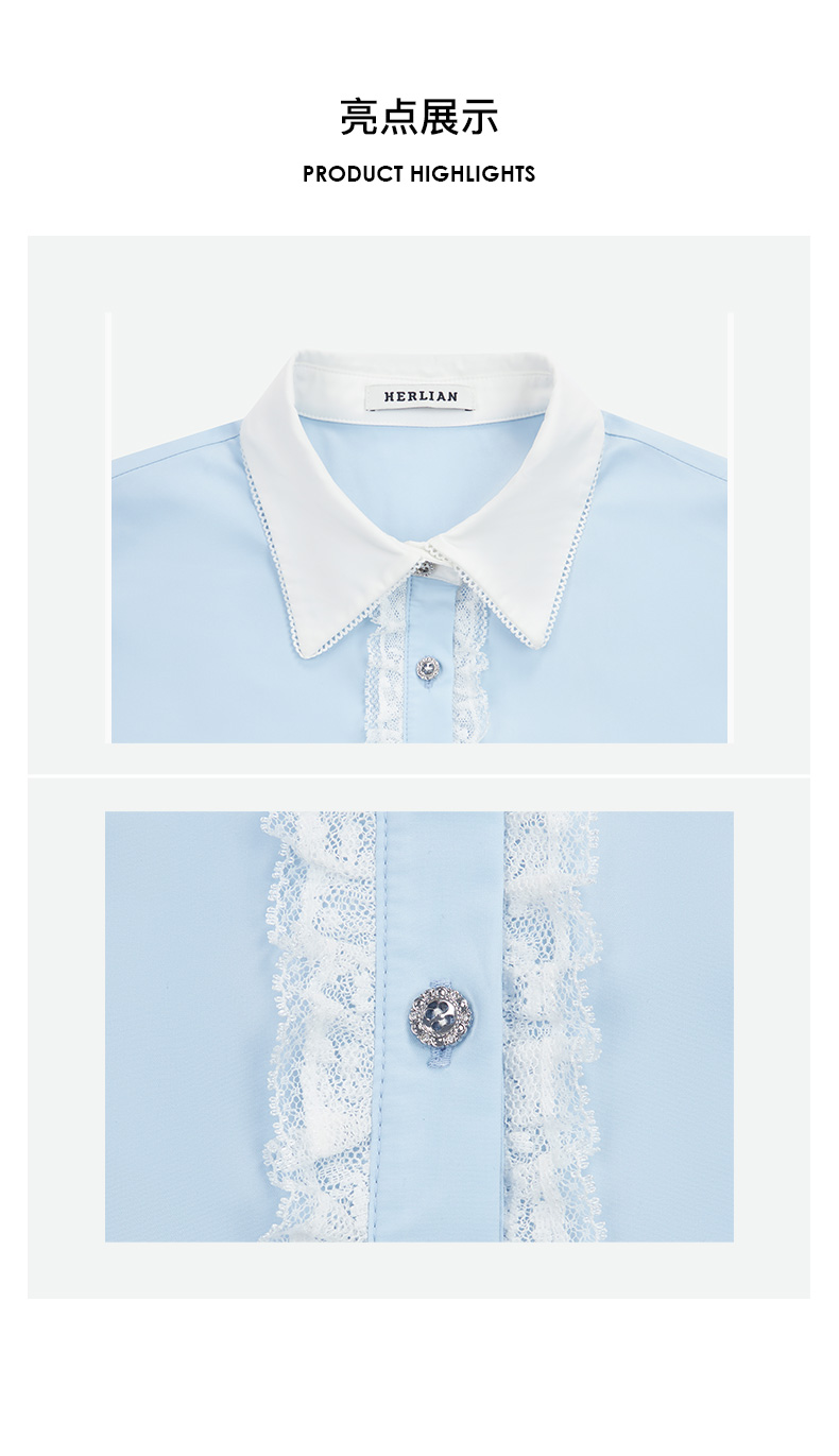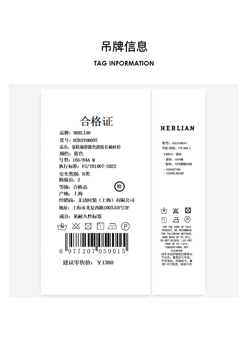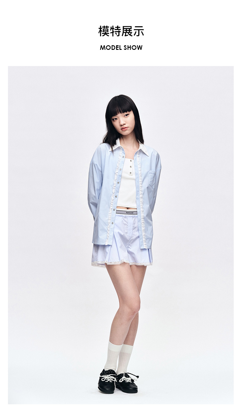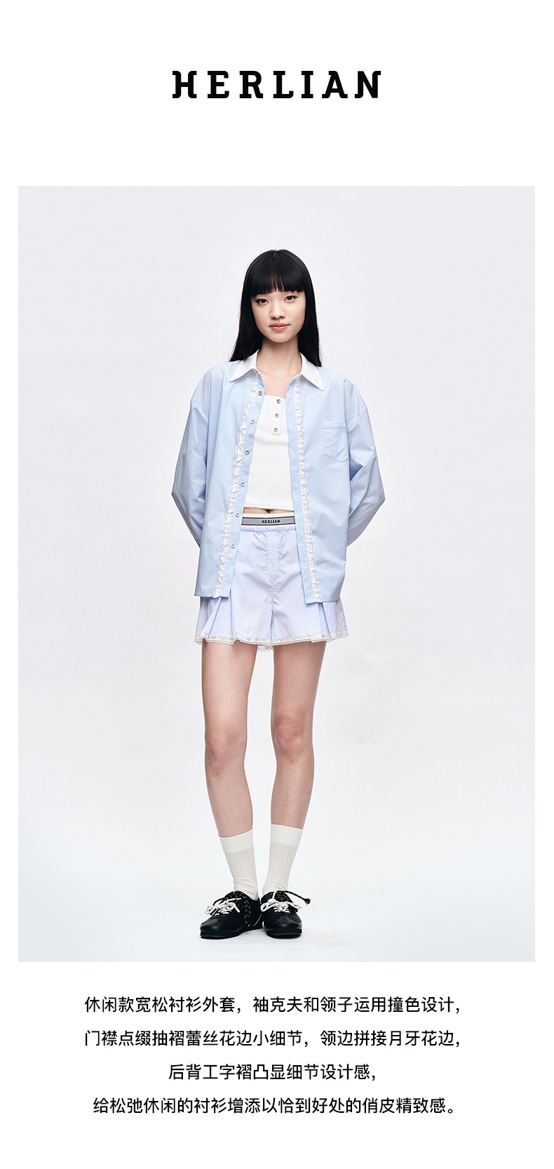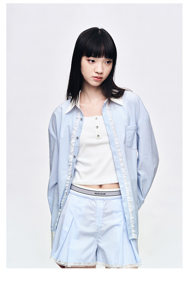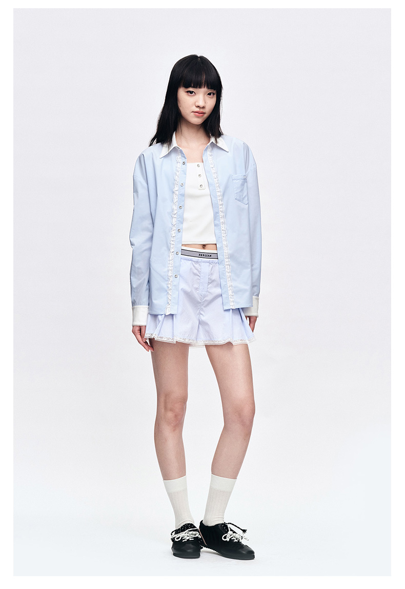 Herlian2025年春夏宽松廓形撞色拼接长袖衬衫
