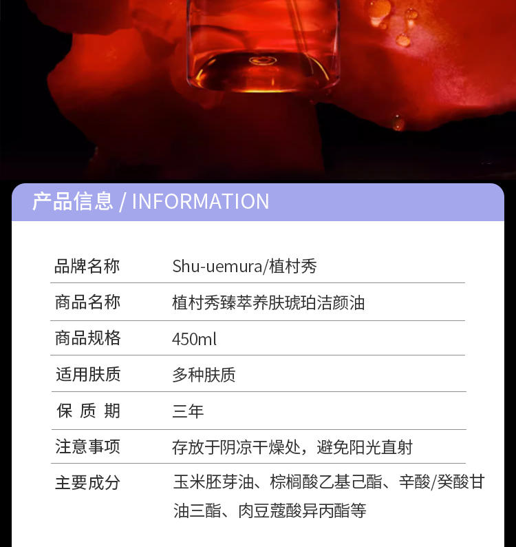【年终限时大促】【一般贸易】植村秀琥珀臻萃洁颜油清洁卸妆油450ml 卸妆油