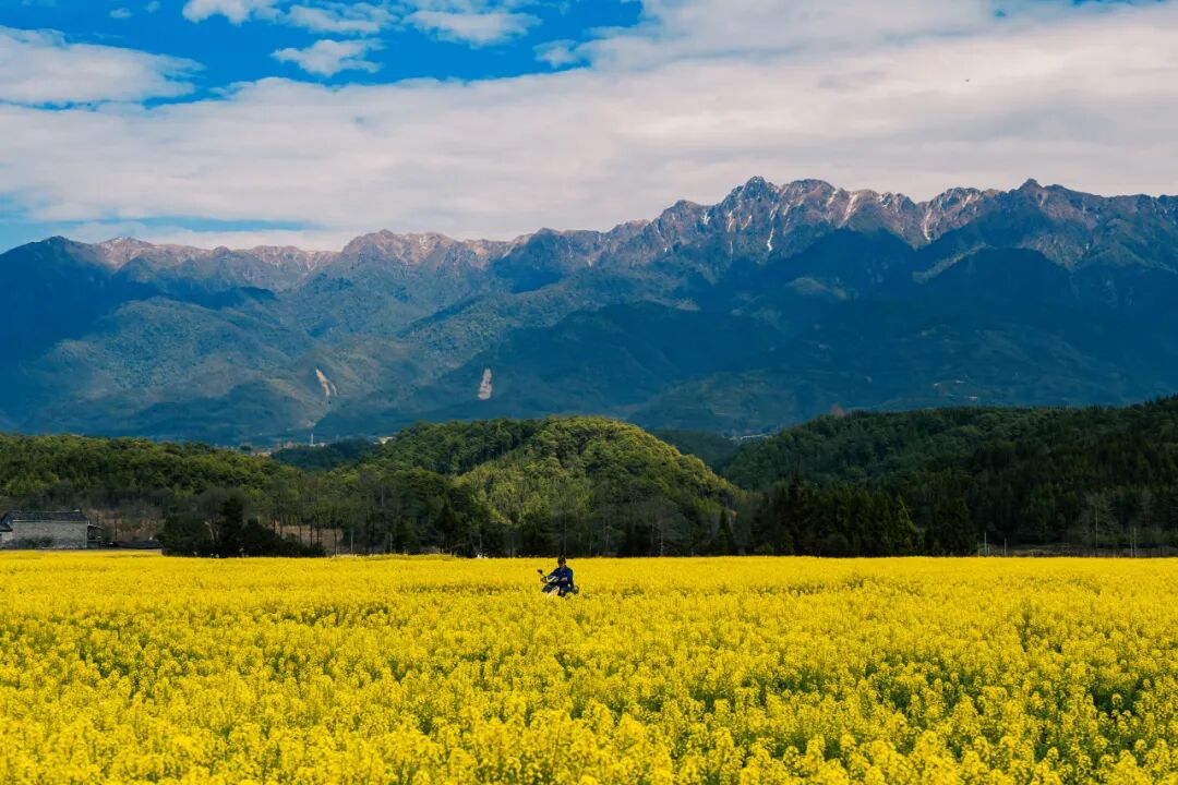 已有四千多年历史的腾冲界头镇,风光旖旎 ,是高黎贡山环抱下的“花园盆地”。 每年春季,雄壮如巨龙般的高黎贡山,山顶白雪圣洁 ,山下整个坝子15万亩油菜花绽放, 一片金黄……