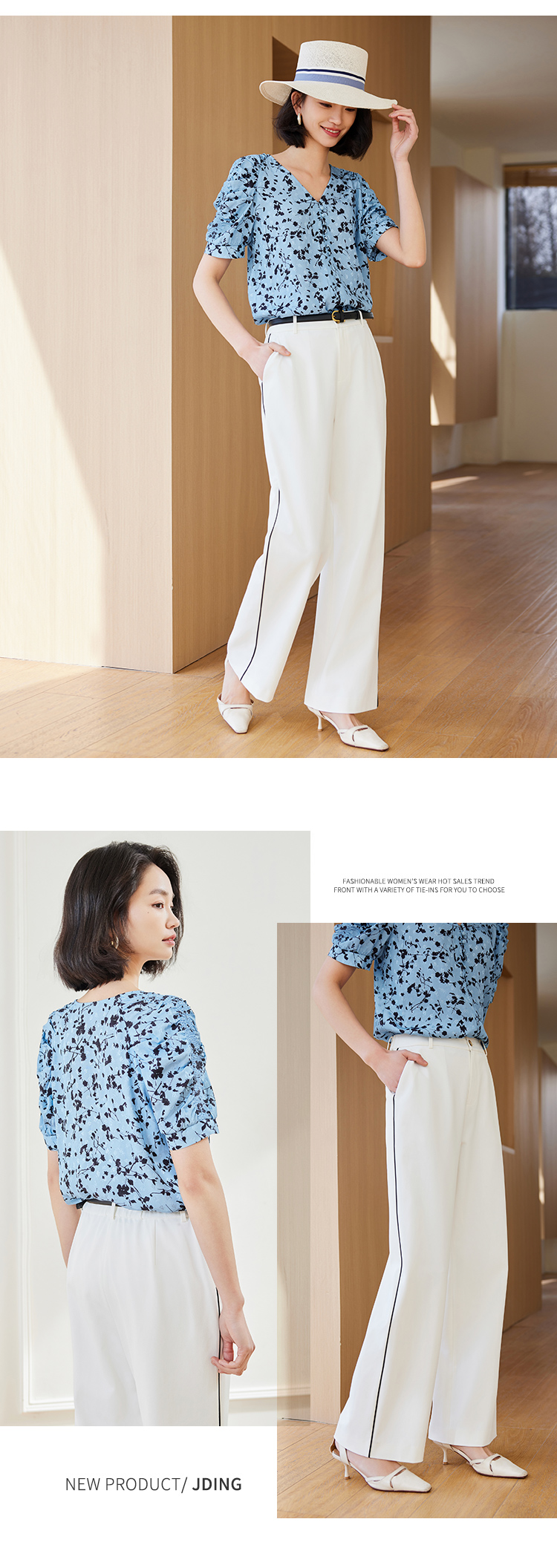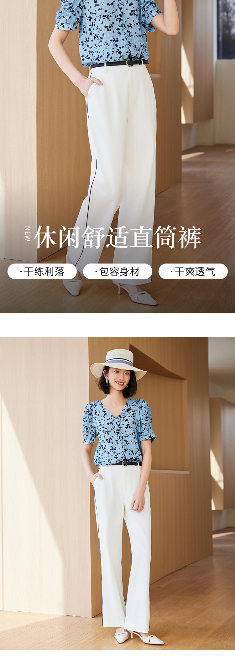 【商场同款】CJTJ414 “ 直筒拼接通勤裤 ” 基础白色 搭配没有局限 廓形松弛 自由度高 抖垂高密度防透面料 穿着舒适 立体显腿长