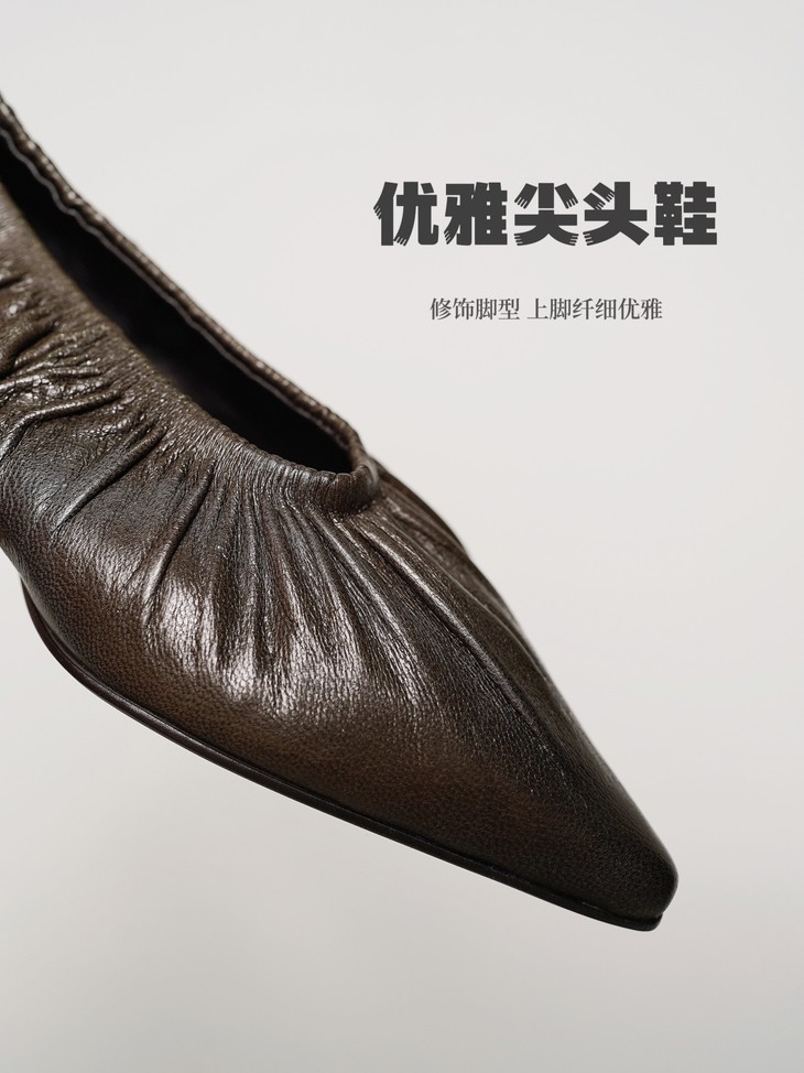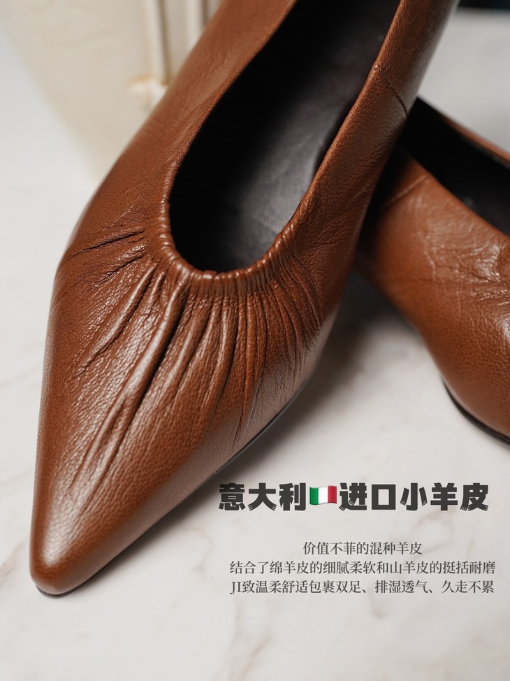 花花团篙端定制意大利进口小羊皮猫跟鞋/皮鞋/奶奶鞋“袜子鞋”JI致绵软细腻舒服脚感,意大利手作质朴篙级感,篙级铅笔灰/美拉德棕色(少量现货,预售12双起订)