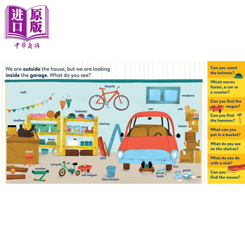 使用Brain Quest标志性的问答形式,用色彩鲜艳的图片,将家中各种物品的基础词汇引入孩子的生活。