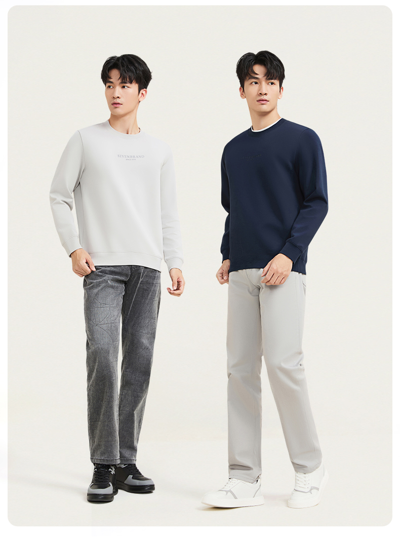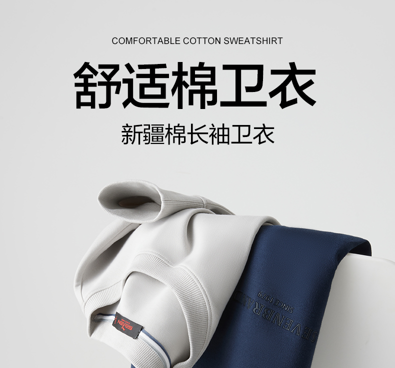 【新疆棉】柒牌男士圆领卫衣2025秋季时尚休闲多色套头长袖上衣129W70250