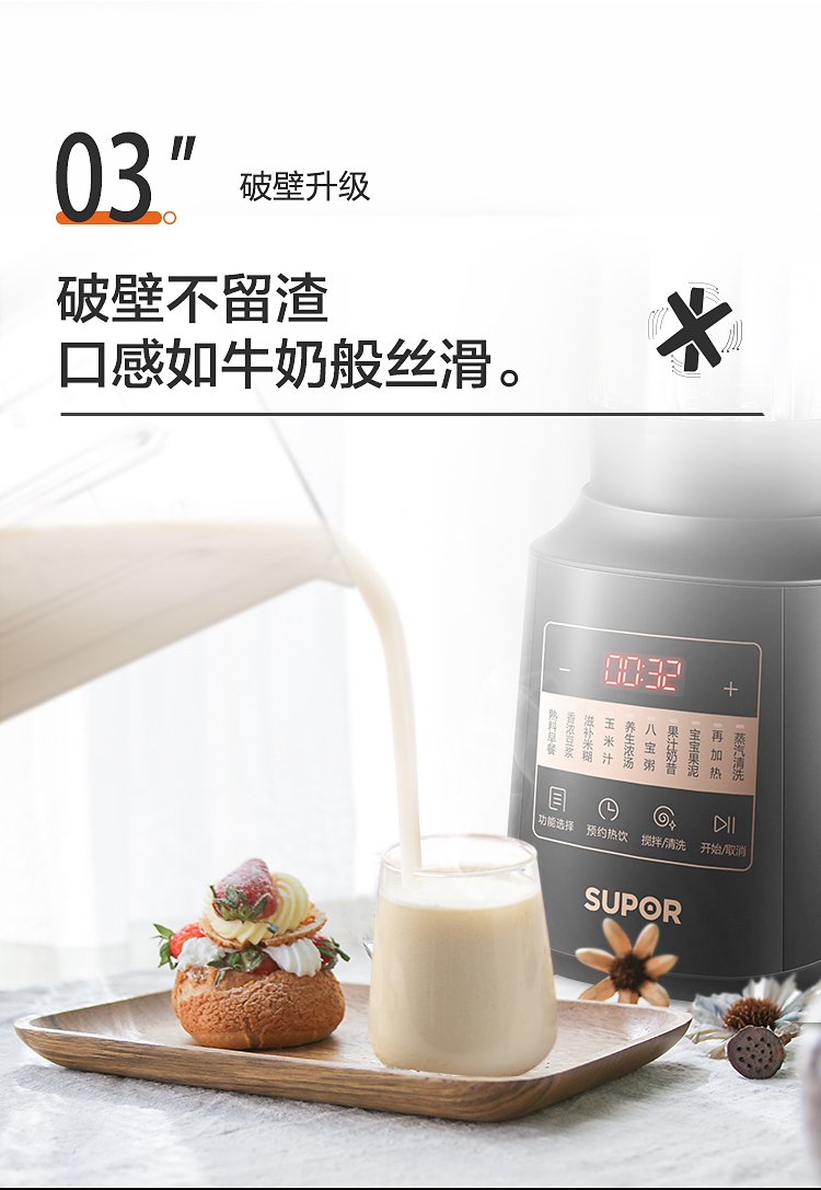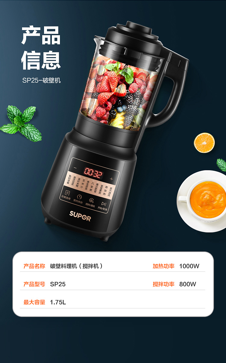 苏泊尔(SUPOR) 破壁机 低音破壁 家用智能 预约加热 破壁料 理机 榨汁机豆浆机绞肉机SP25