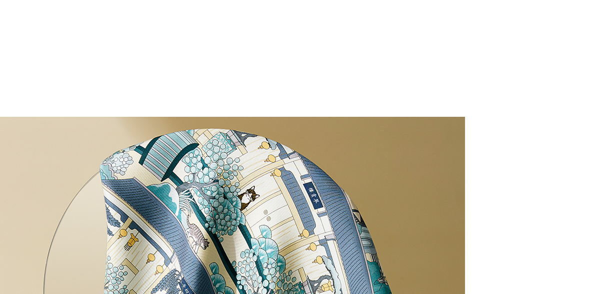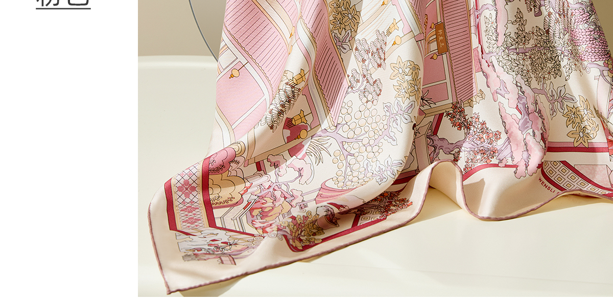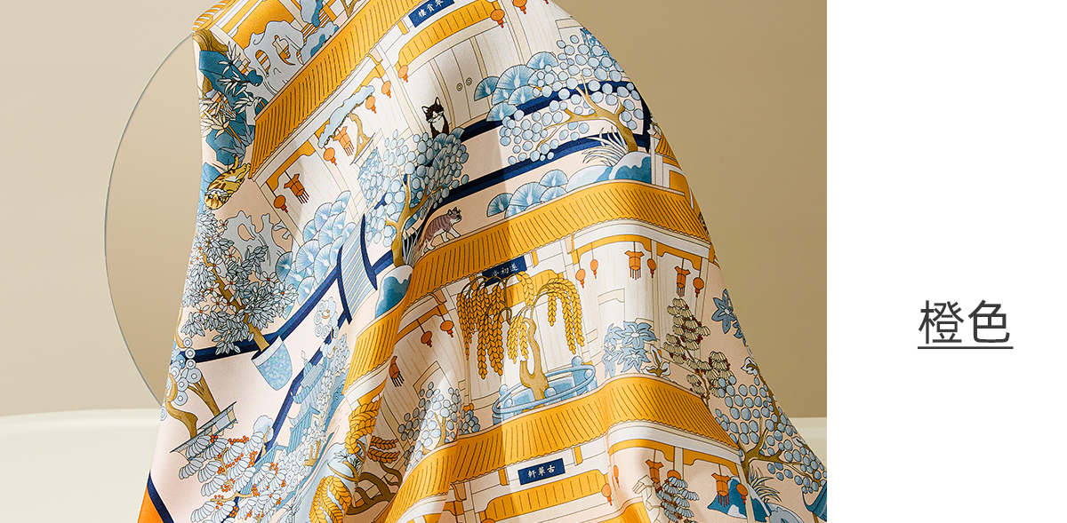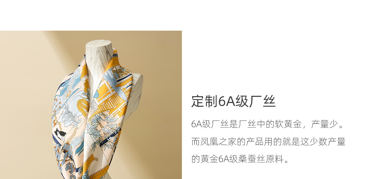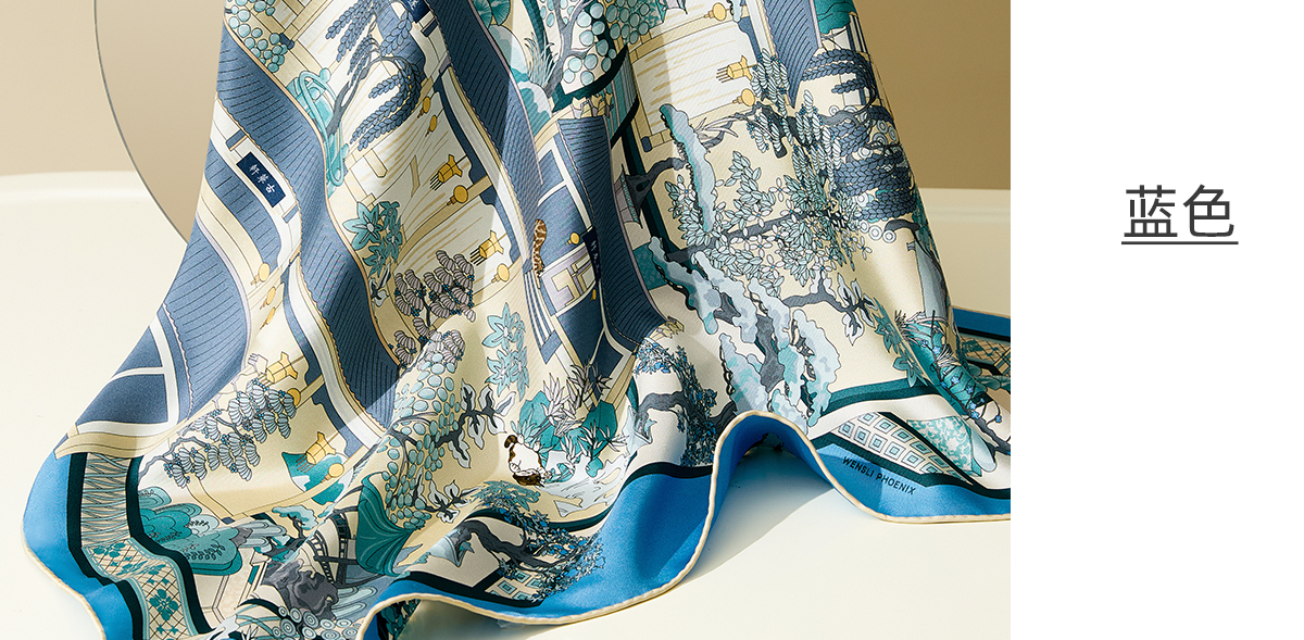 凤凰之家“宁寿闲趣”75厘米双面印花中方巾