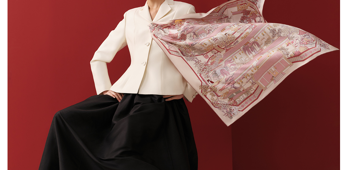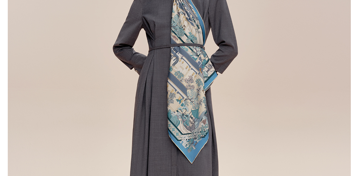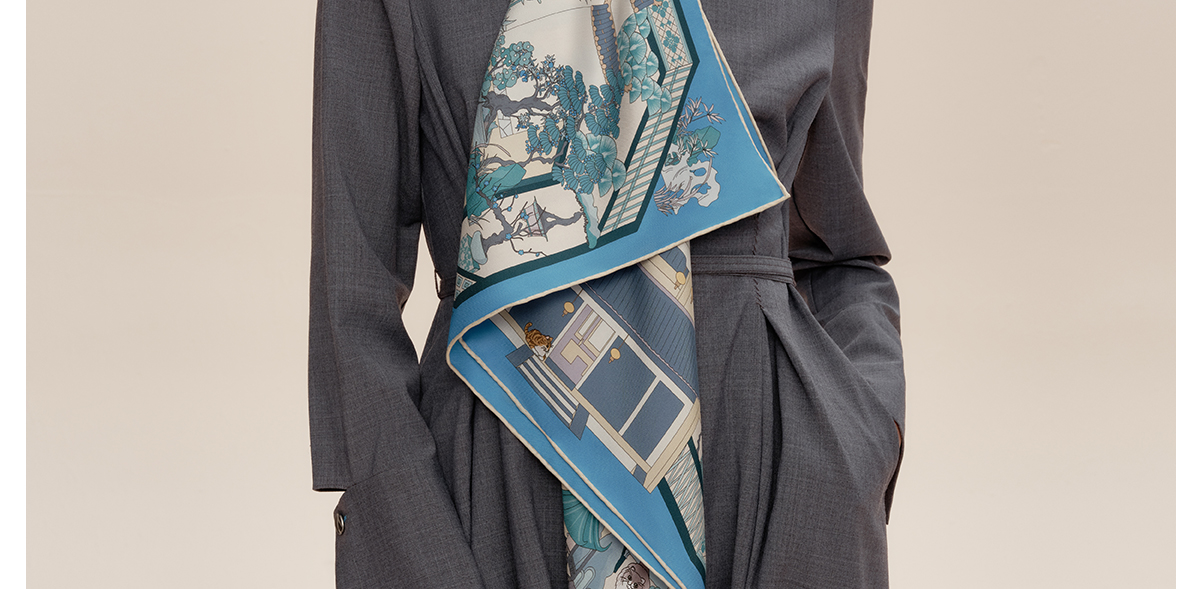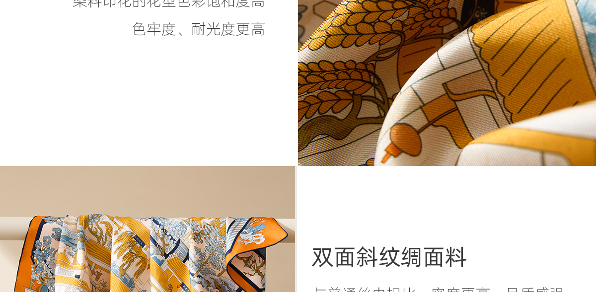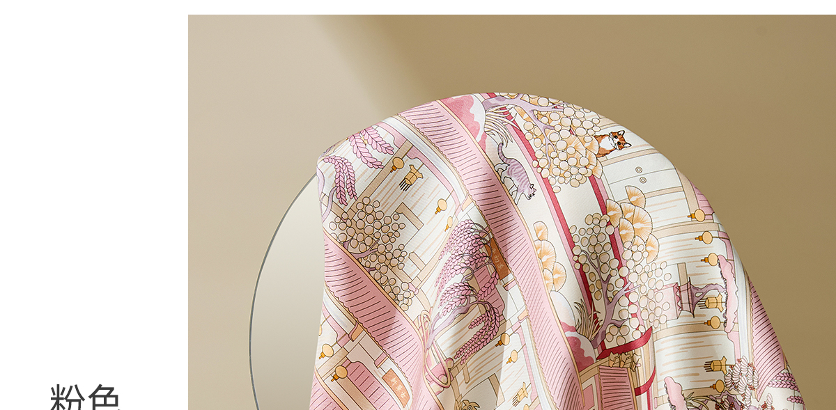 凤凰之家“宁寿闲趣”75厘米双面印花中方巾