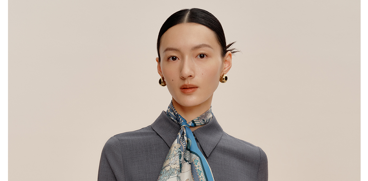 万事利“玉兰赋”63厘米双面印花真丝中方巾