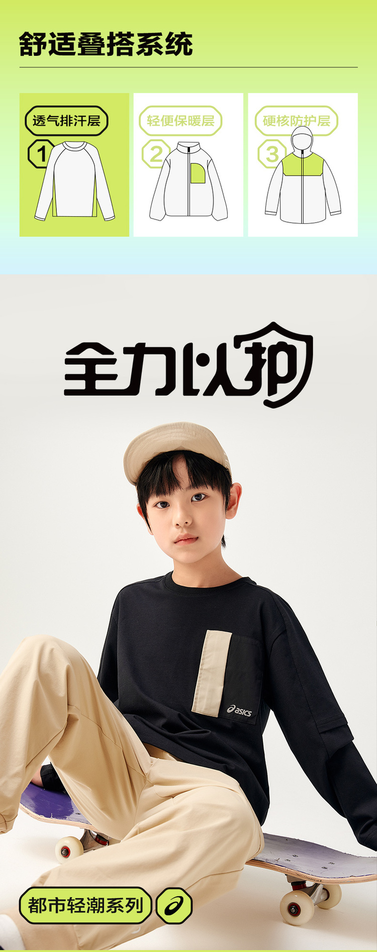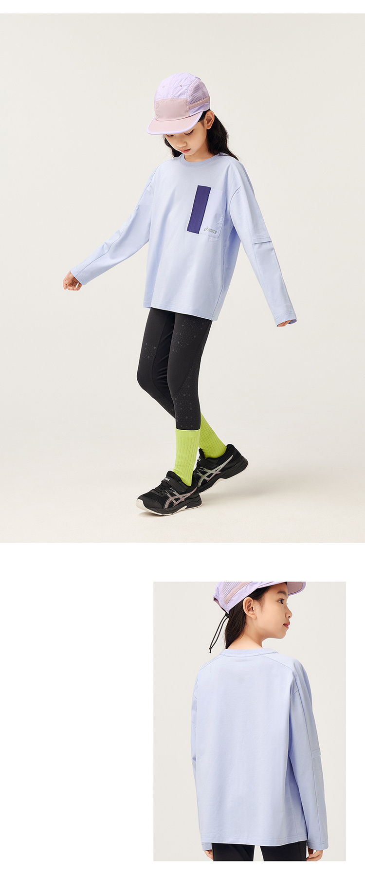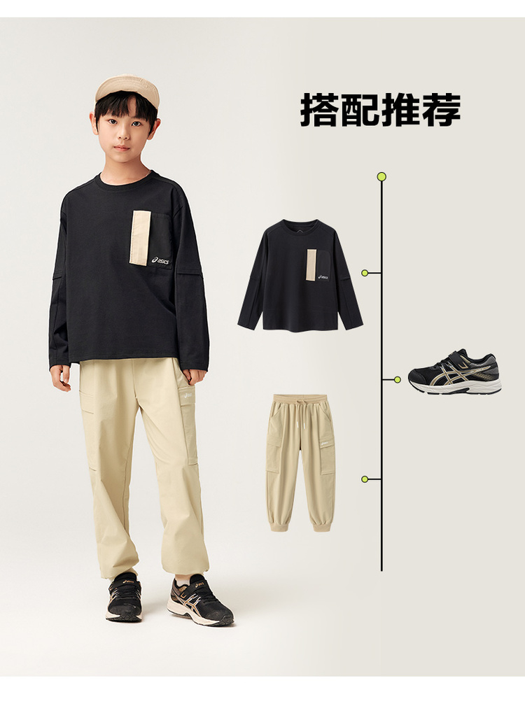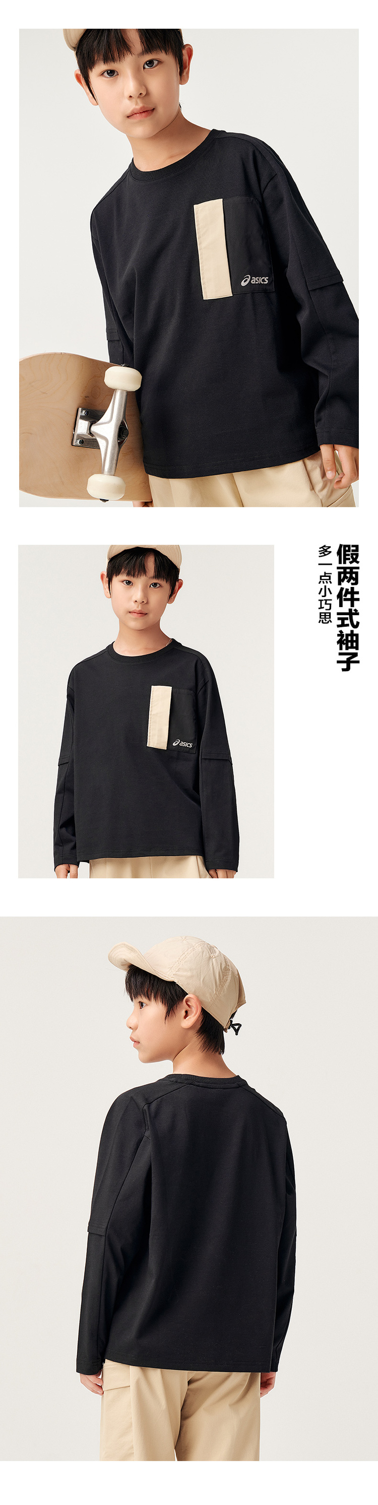ASICS/亚瑟士童装中大童中性款长袖针织T恤2024秋日常时尚长袖T恤