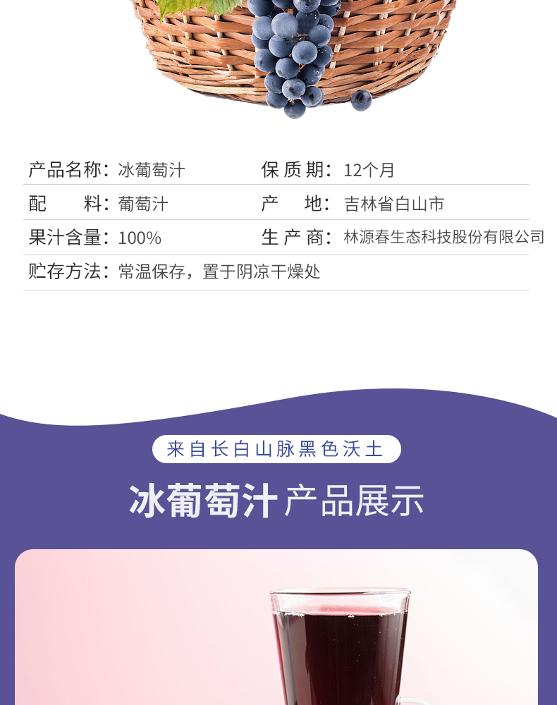 林源春冰葡萄汁 生榨果汁 来自长白山黑色沃土