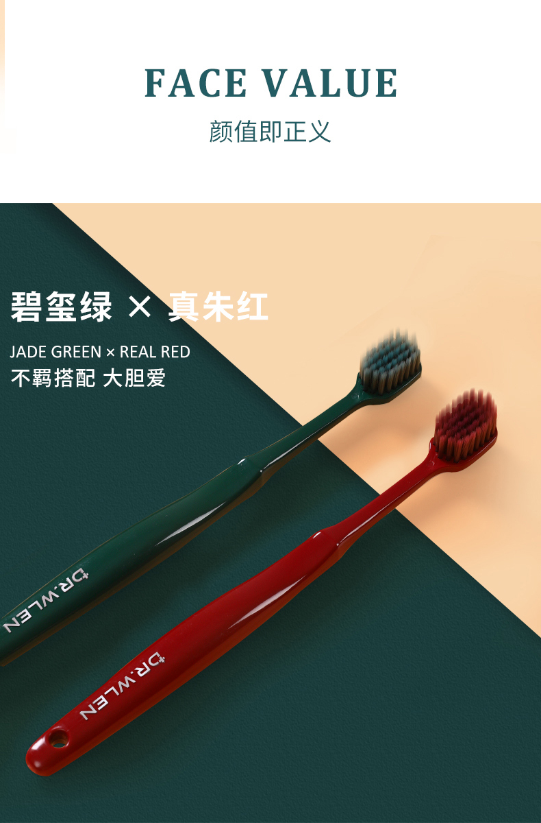 【英国品牌】DR.WLEN迪王 情侣款牙刷 宽头深层清洁BBC细软毛成人牙刷 保护牙龈 2支装