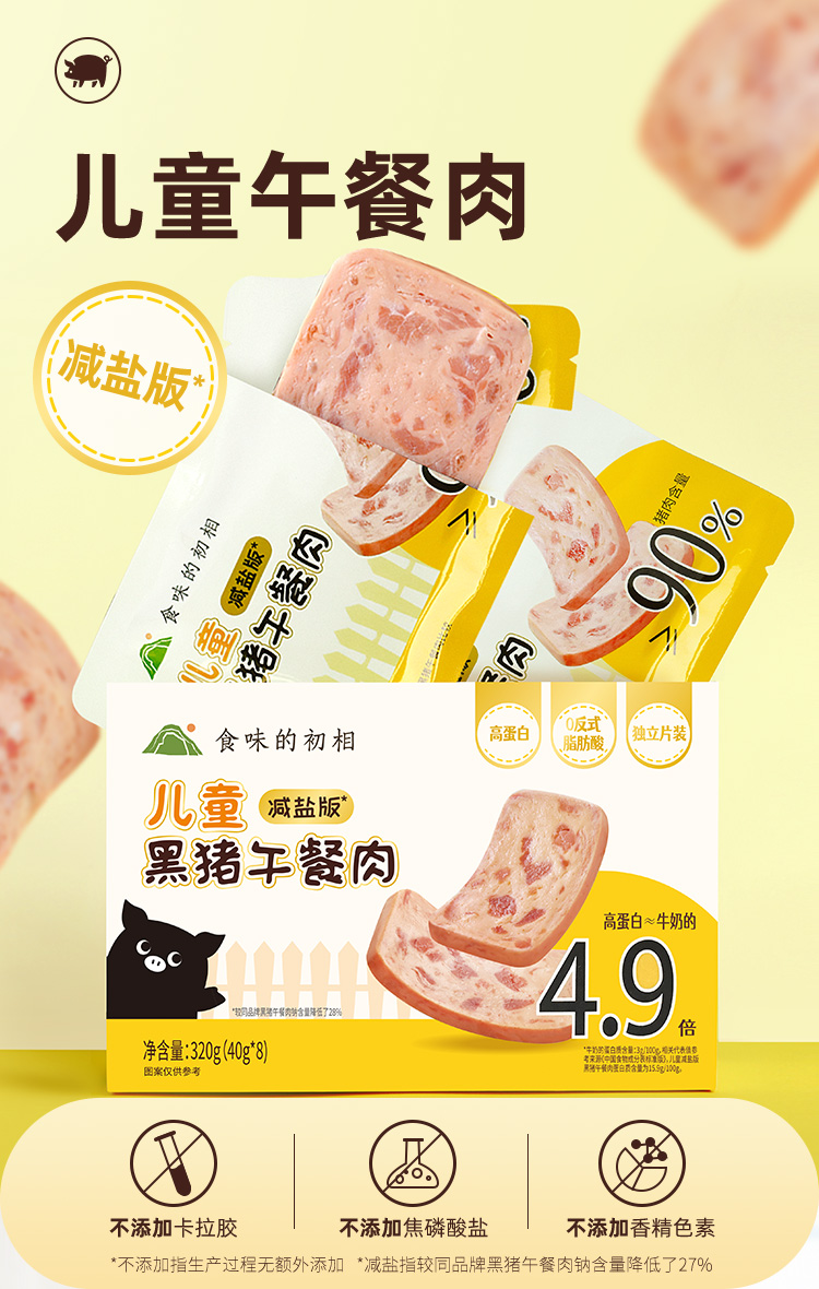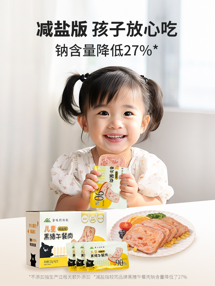 ✅在原版基础上再减钠超过28%,突破市面上午餐肉钠含量底线!