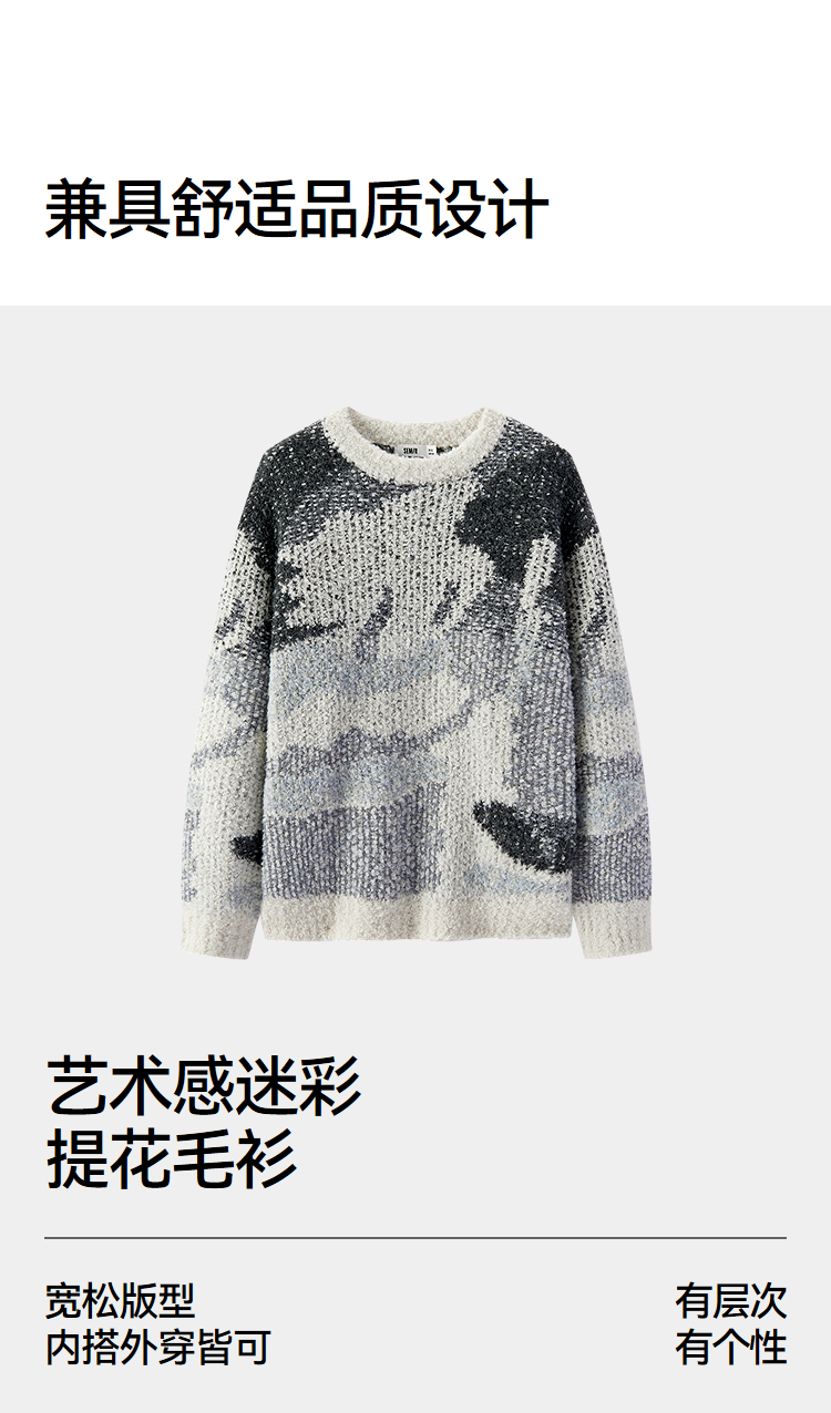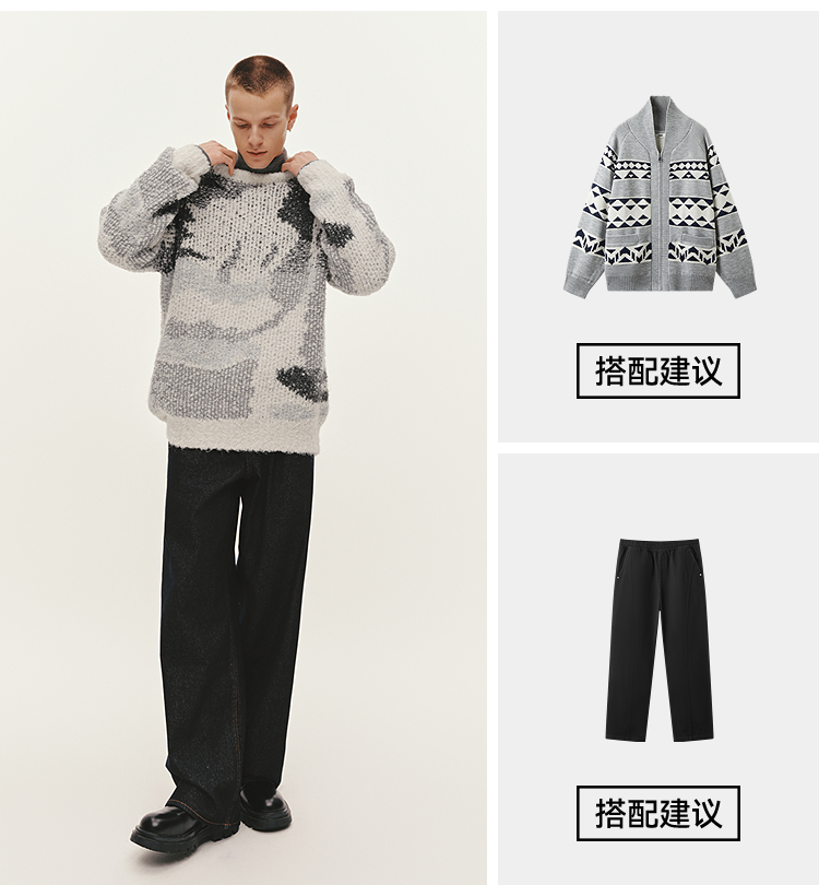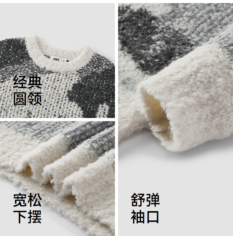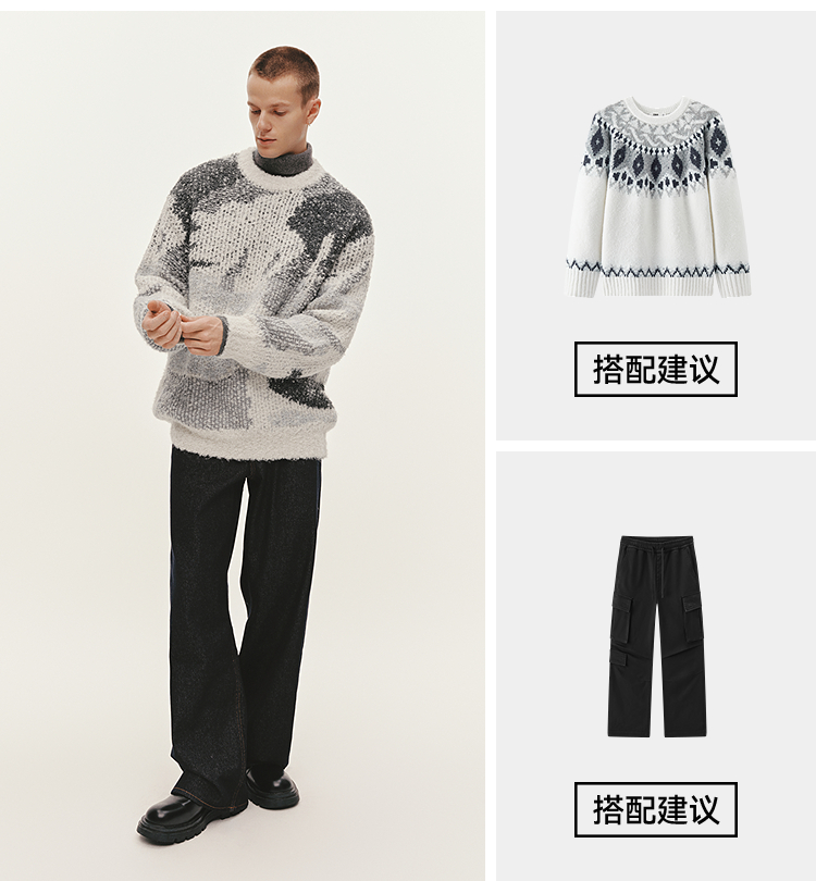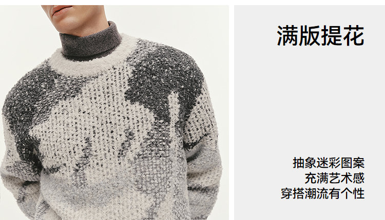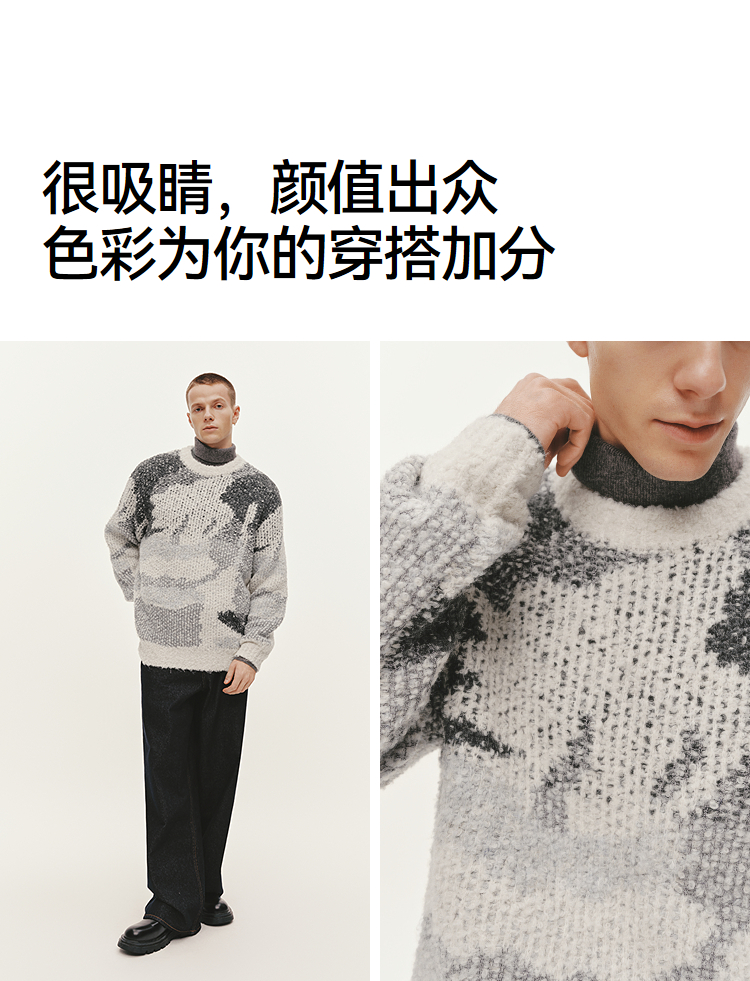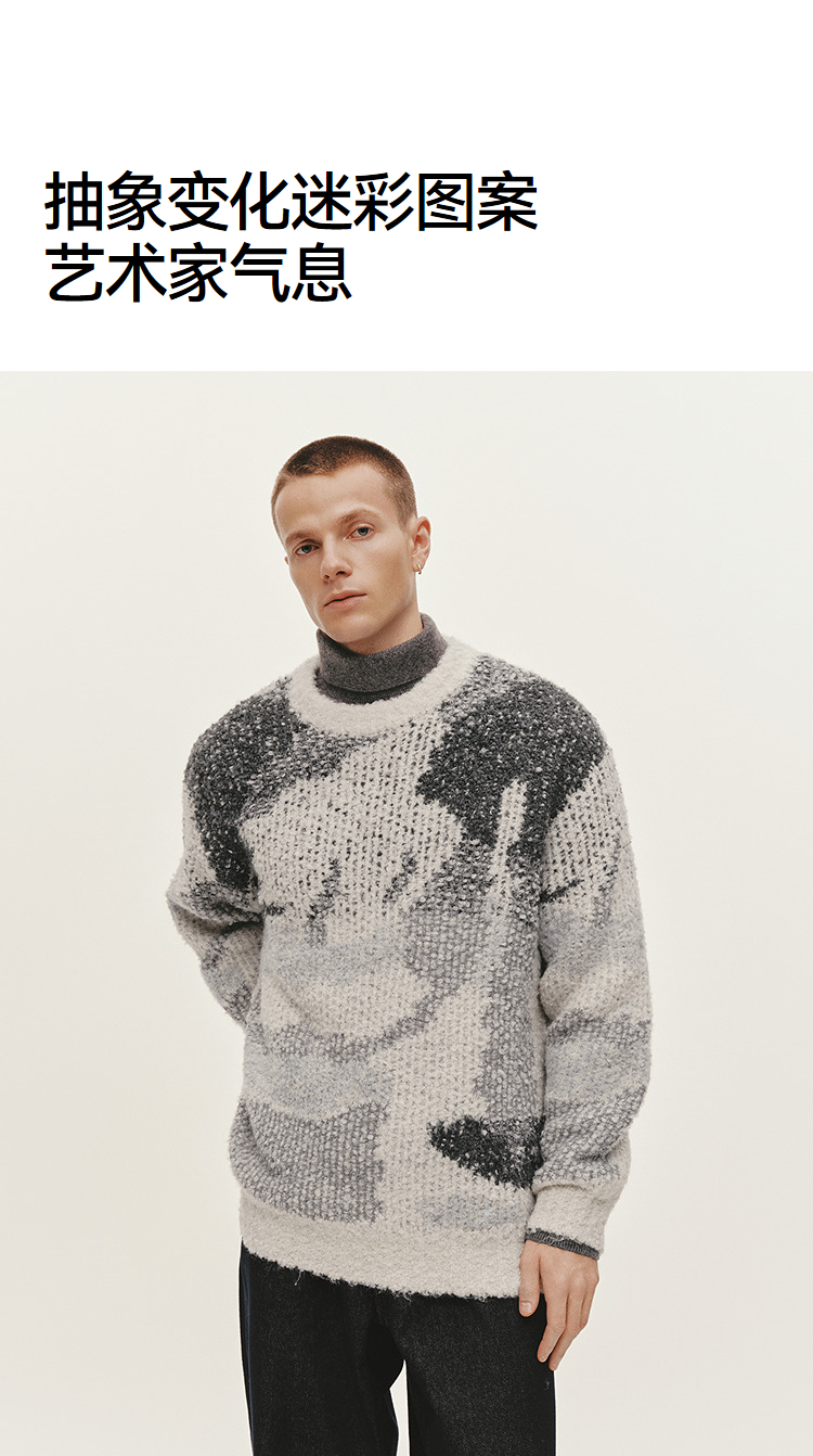 森马毛衫男冬艺术感撞色抽象迷彩提花针织衫2025新款潮流情侣毛衣