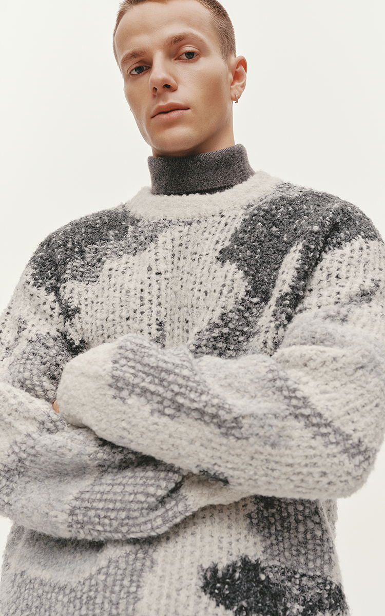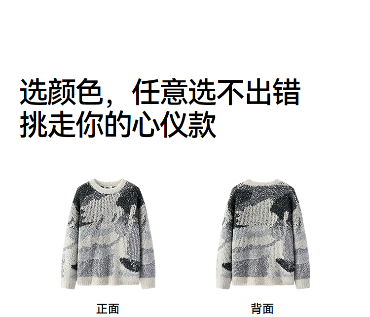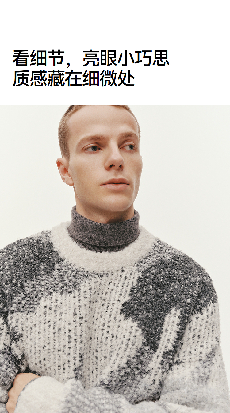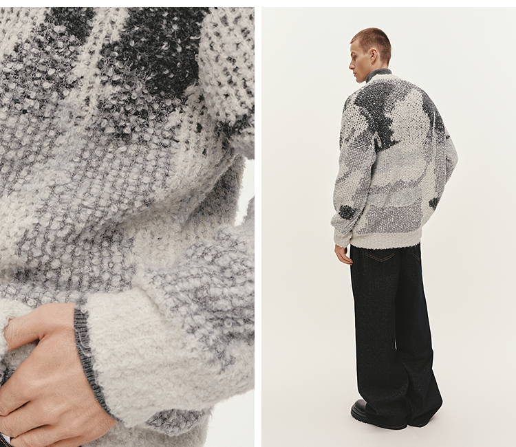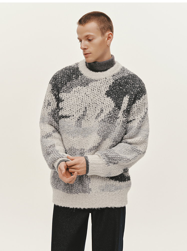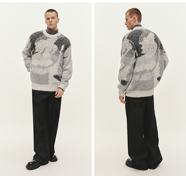 森马毛衫男冬艺术感撞色抽象迷彩提花针织衫2025新款潮流情侣毛衣