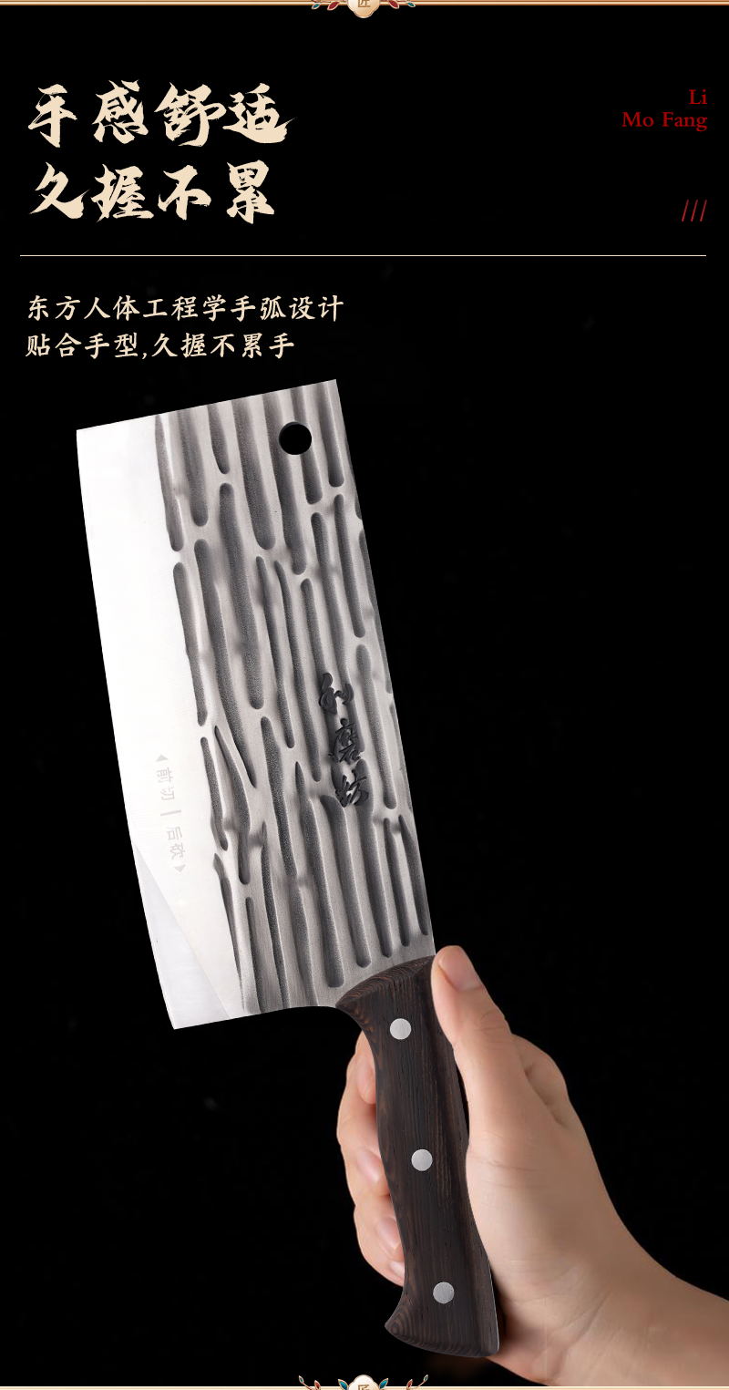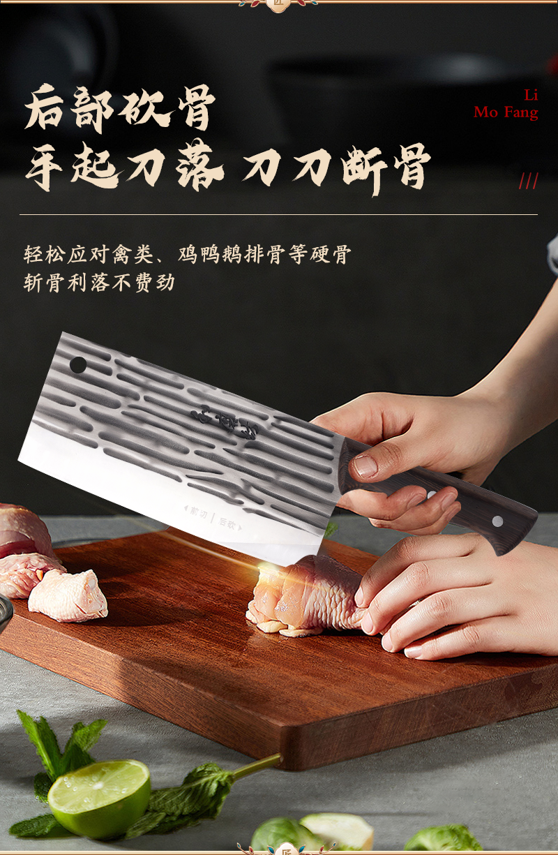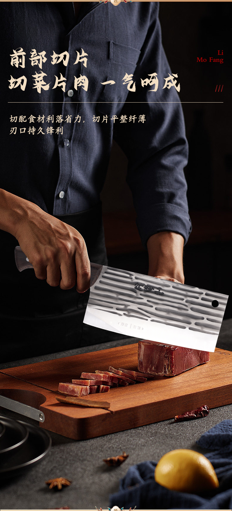 【送多功能剪刀1把+水果刀1把+磨刀棒1根】利磨坊方形锤纹砍切刀 百年品牌 手工锻打 厨师专用