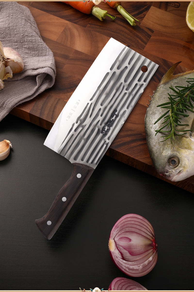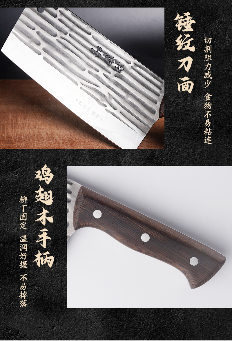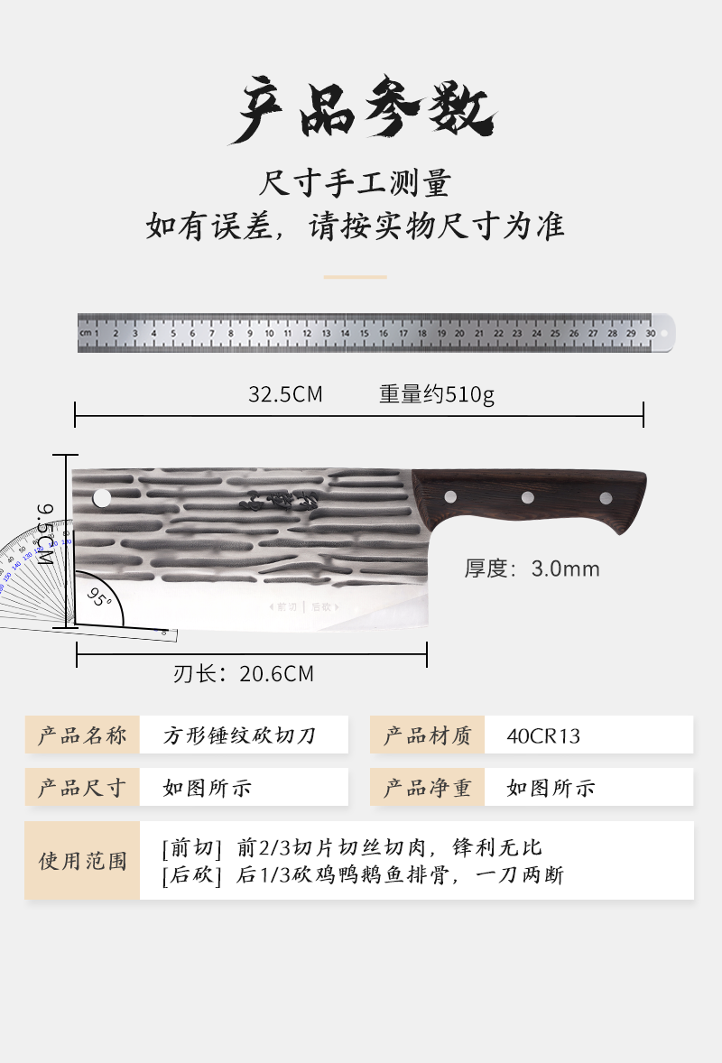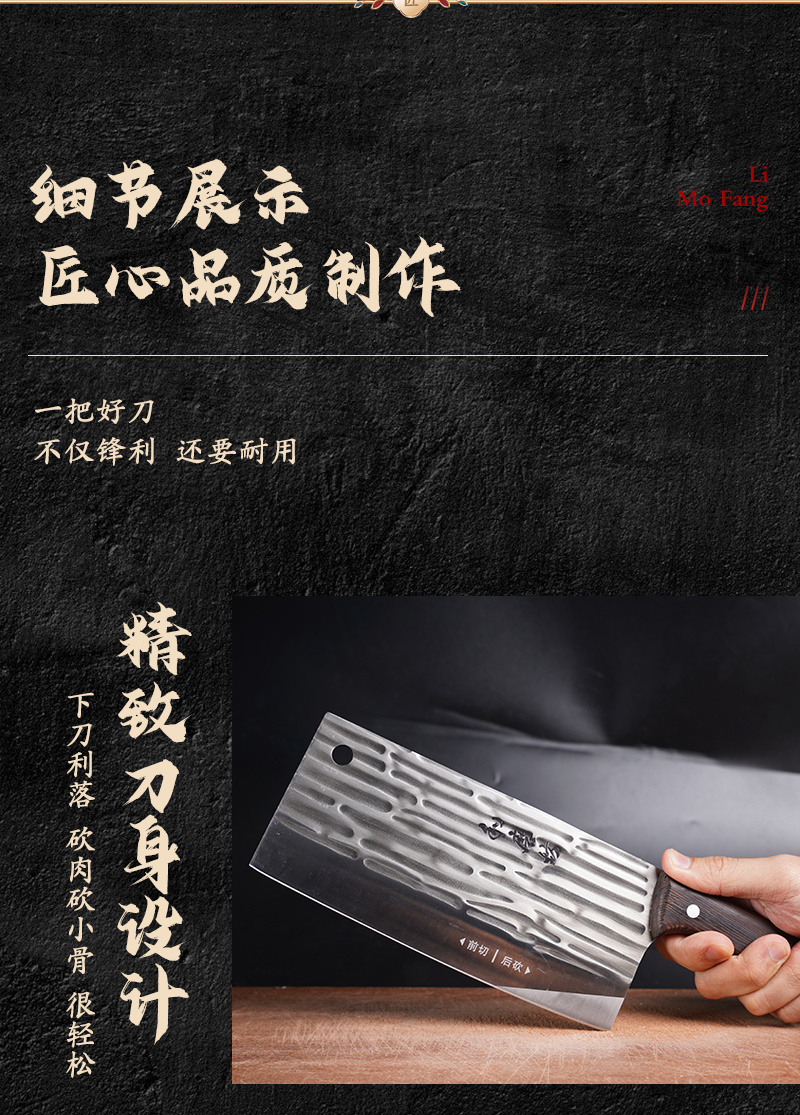 【送多功能剪刀1把+水果刀1把+磨刀棒1根】利磨坊方形锤纹砍切刀 百年品牌 手工锻打 厨师专用