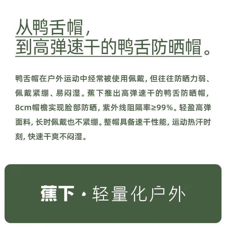 蕉下然野系列率则男女同款户外防晒鸭舌帽