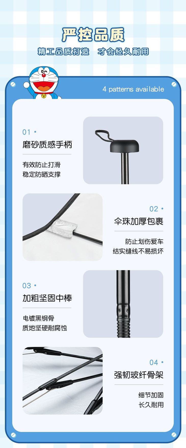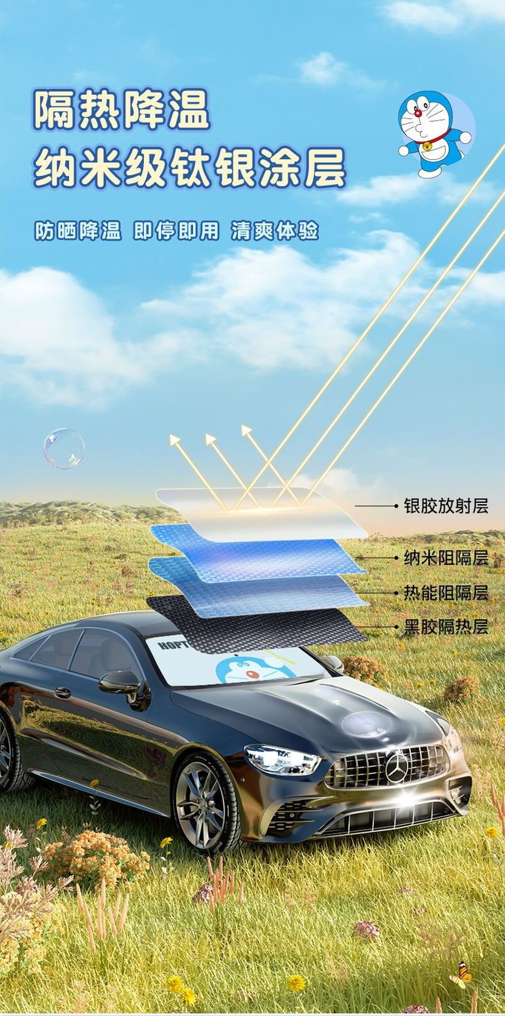 适用于各种车型,大小型号按需挑选,做工精致用料顶级,让你爱车“不惧骄阳” 1️⃣ 哆啦联名款 2️⃣纯色系列 -金胶银胶款 做工精致 用料用心 满满的都是细节
