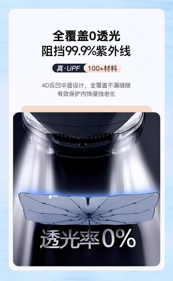 💁🚗为什么这么顶? 1️⃣高效复合铁银涂层面料,不透光,紫外线阻隔率