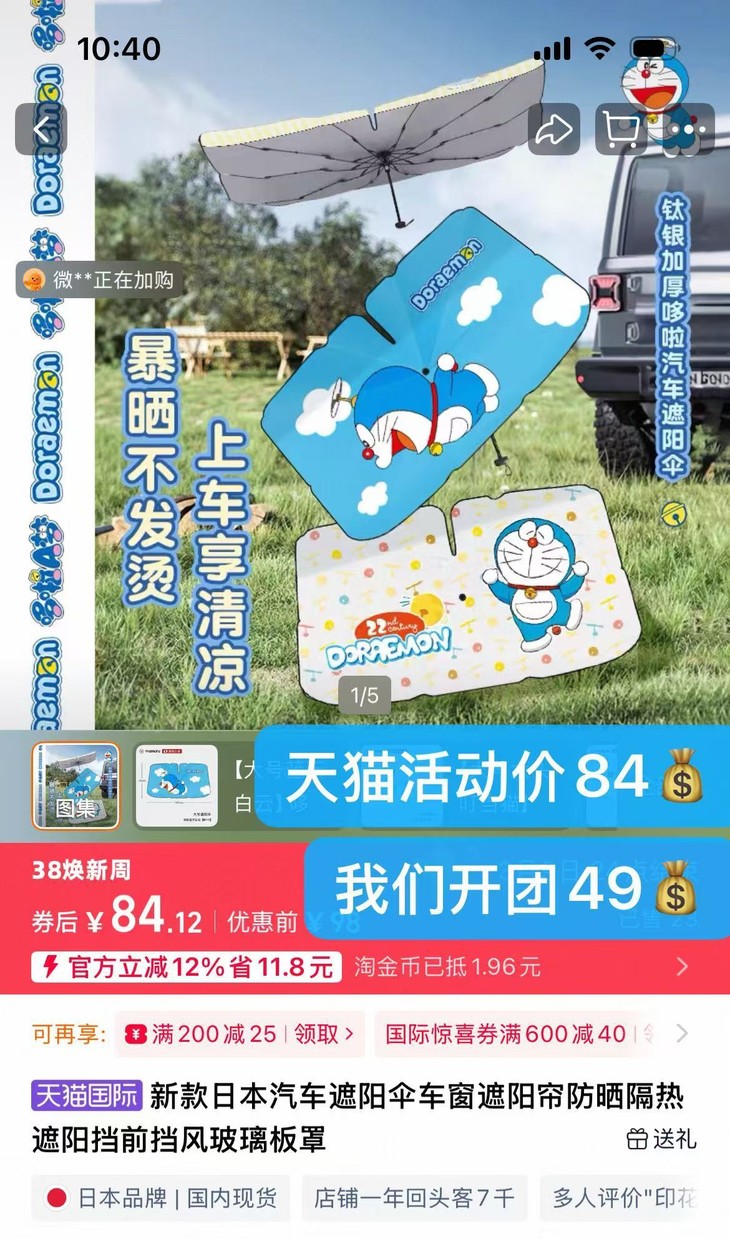 官旗84💰立省35💰早买早优惠!就此一批,清完不补!!🥰【哆啦A梦X mamoru联名款车载防晒伞】 | 通用汽车伞来啦,👉适用于任何车型 !