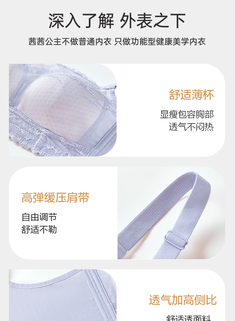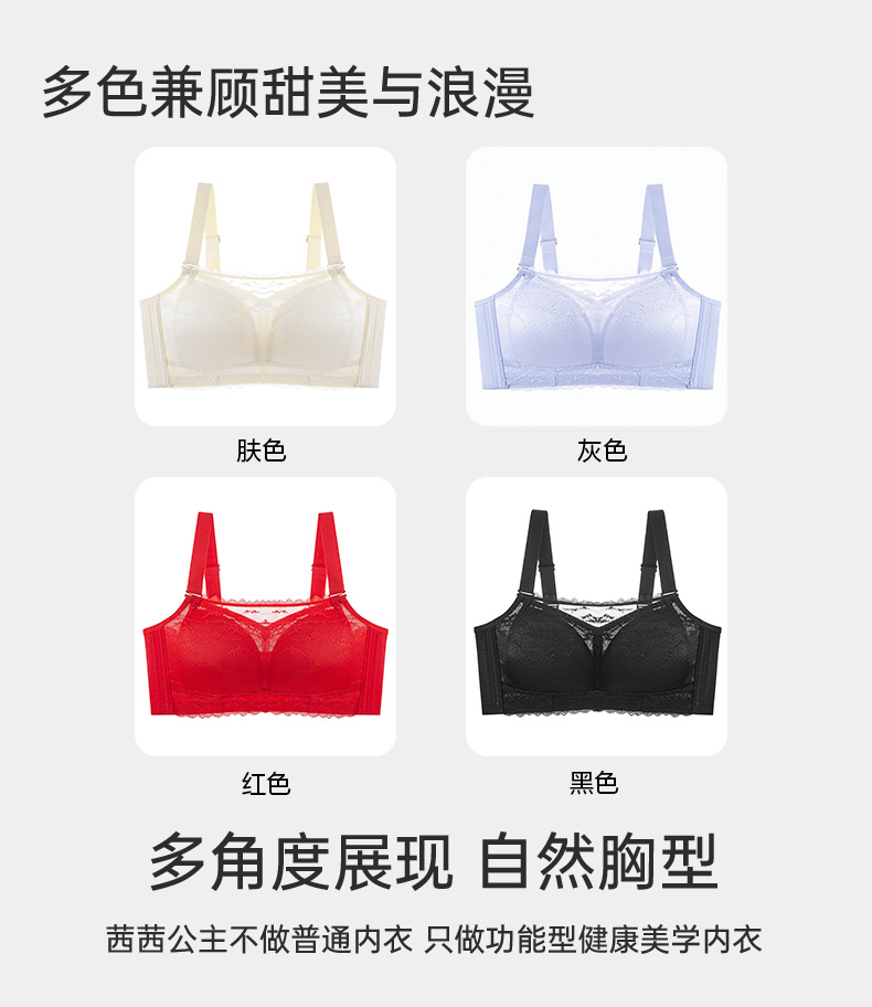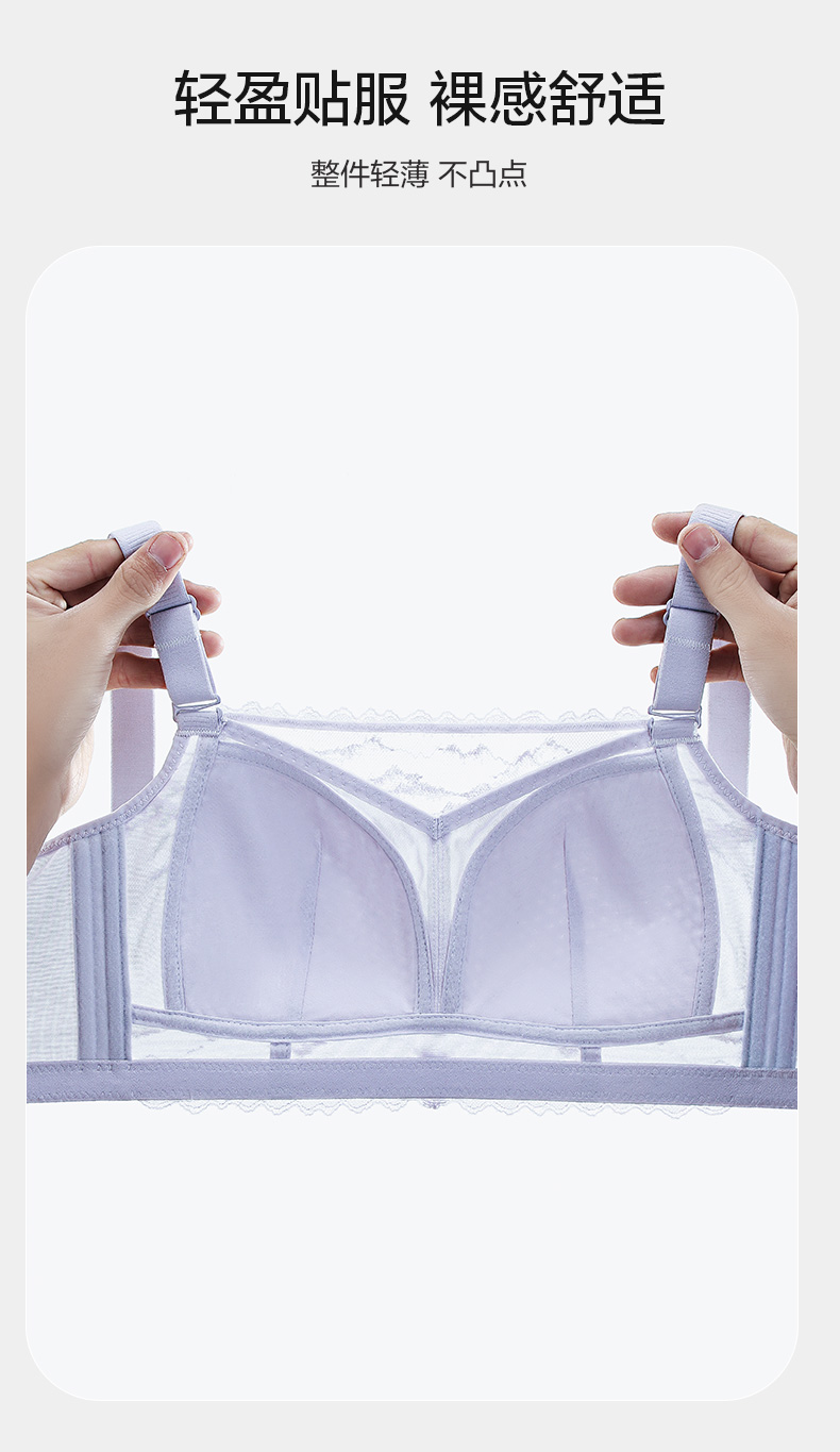 轻奢女王调整型文胸 无钢圈全罩杯超薄杯 通透蕾丝灵动刺绣 大胸显小 桑蚕丝里料抑菌滋养